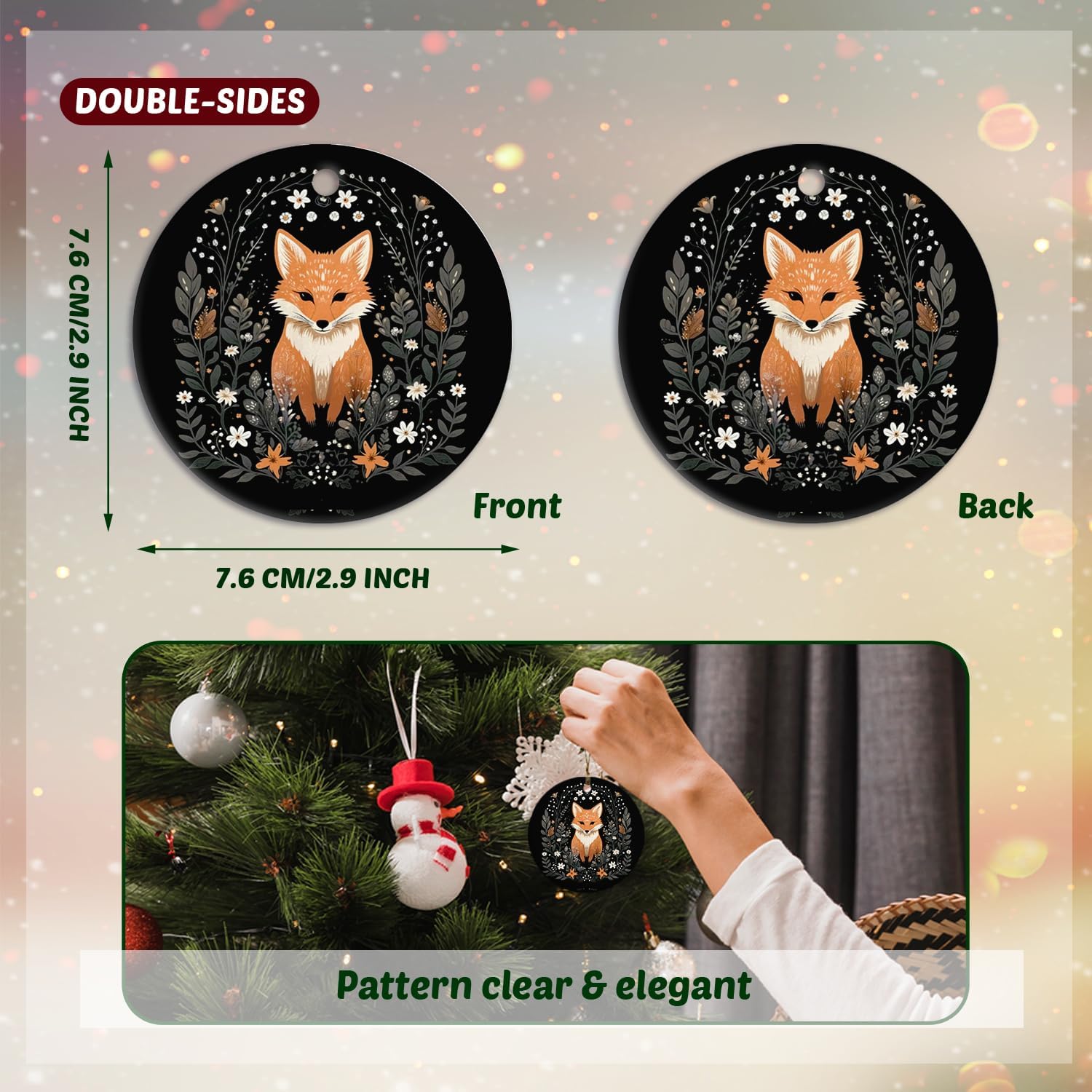 Fox Ornament, Fox Gifts for Women Girls Men,Gifts for Fox Lovers, Cottagecore Botanical Fox Ceramic Ornaments, Fox Decorative Hanging Ornament