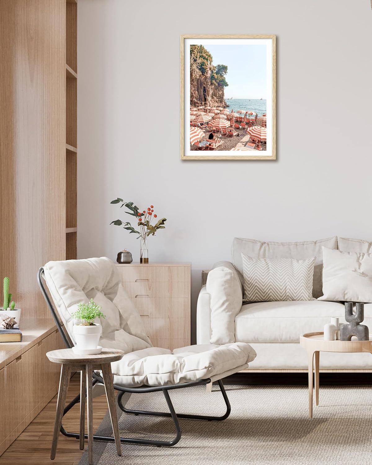 HesenDot Natural OAK Wood Framed Summer in Positano Wall Art,12x16in Italy Amalfi Coastal Canvas Wall Print,Arienzo Beach Umbrellas Poster Wall Decor for Living Room,Bedroom,Office Gallery Set of 1