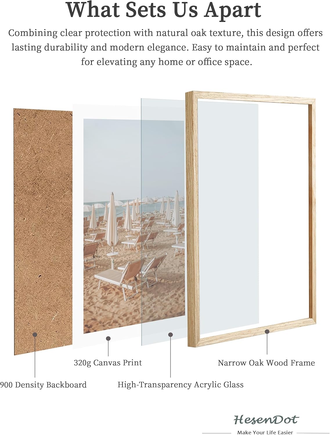 - Premium Natural OAK Frame: Crafted from high-quality natural OAK wood, this photography frame adds a touch of elegance and durability, enhancing the overall aesthetic of your home decor.