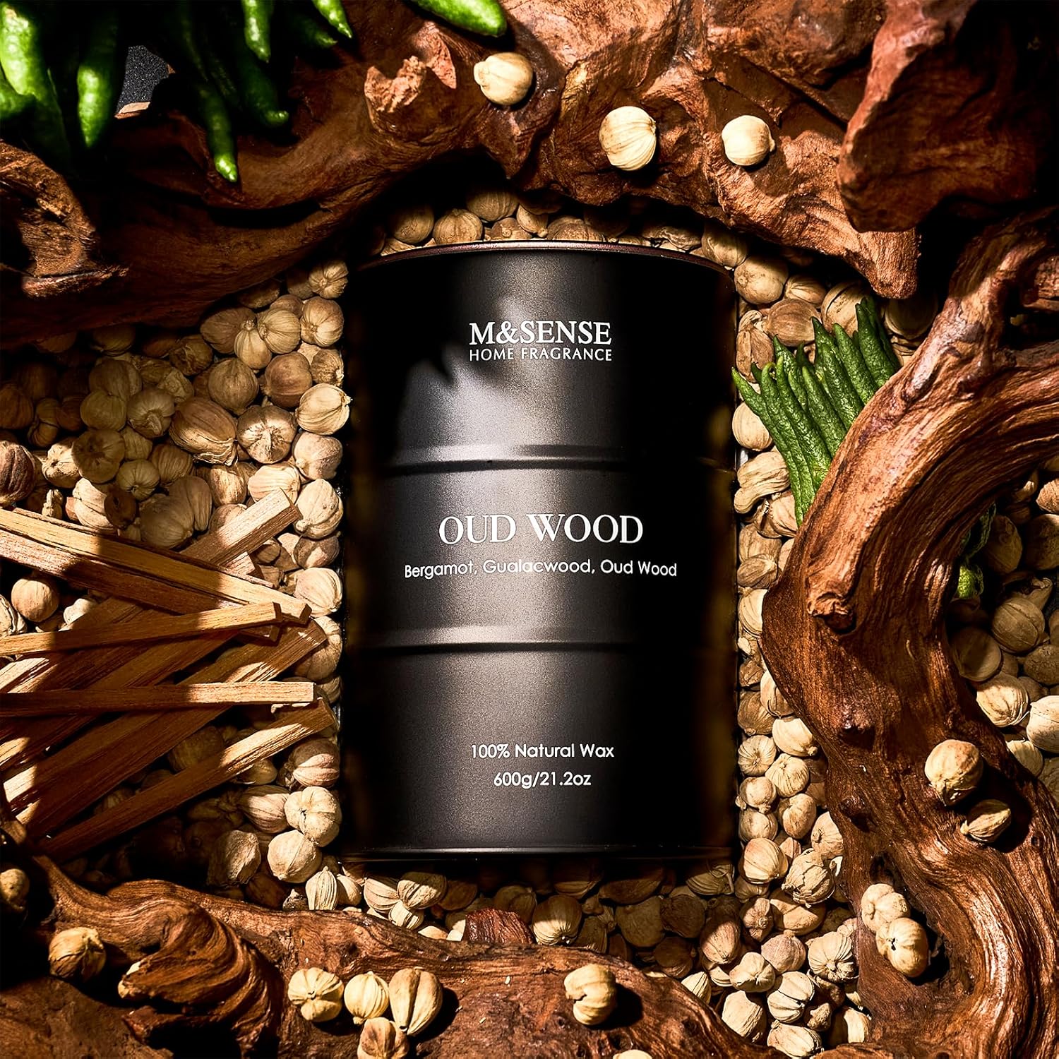 M&SENSE Oud Wood Large Scented Candles Natural Soy Wax, 21.2oz Long Lasting Up to 120 Hours Burning Time, Unique Candle Gifts for Men Women