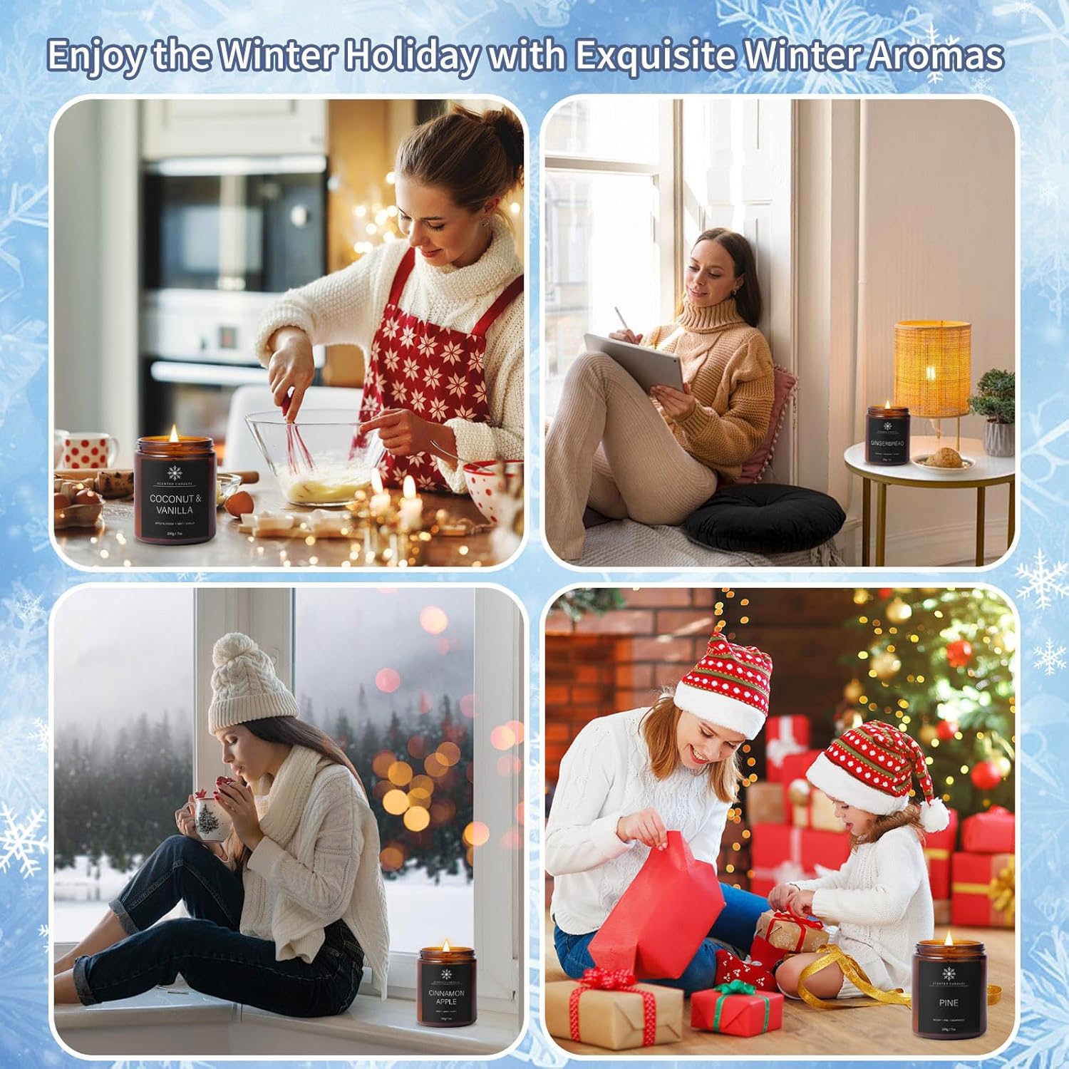 - Christmas Gifts Set: Whether for personal use or as a gift for family and friends, or just to show someone you care, this collection of winter scents will delight your heart with beautifully packaged, festive candles. More than just a gift, this is an invitation to stress relief and enjoy the simple pleasures of winter.