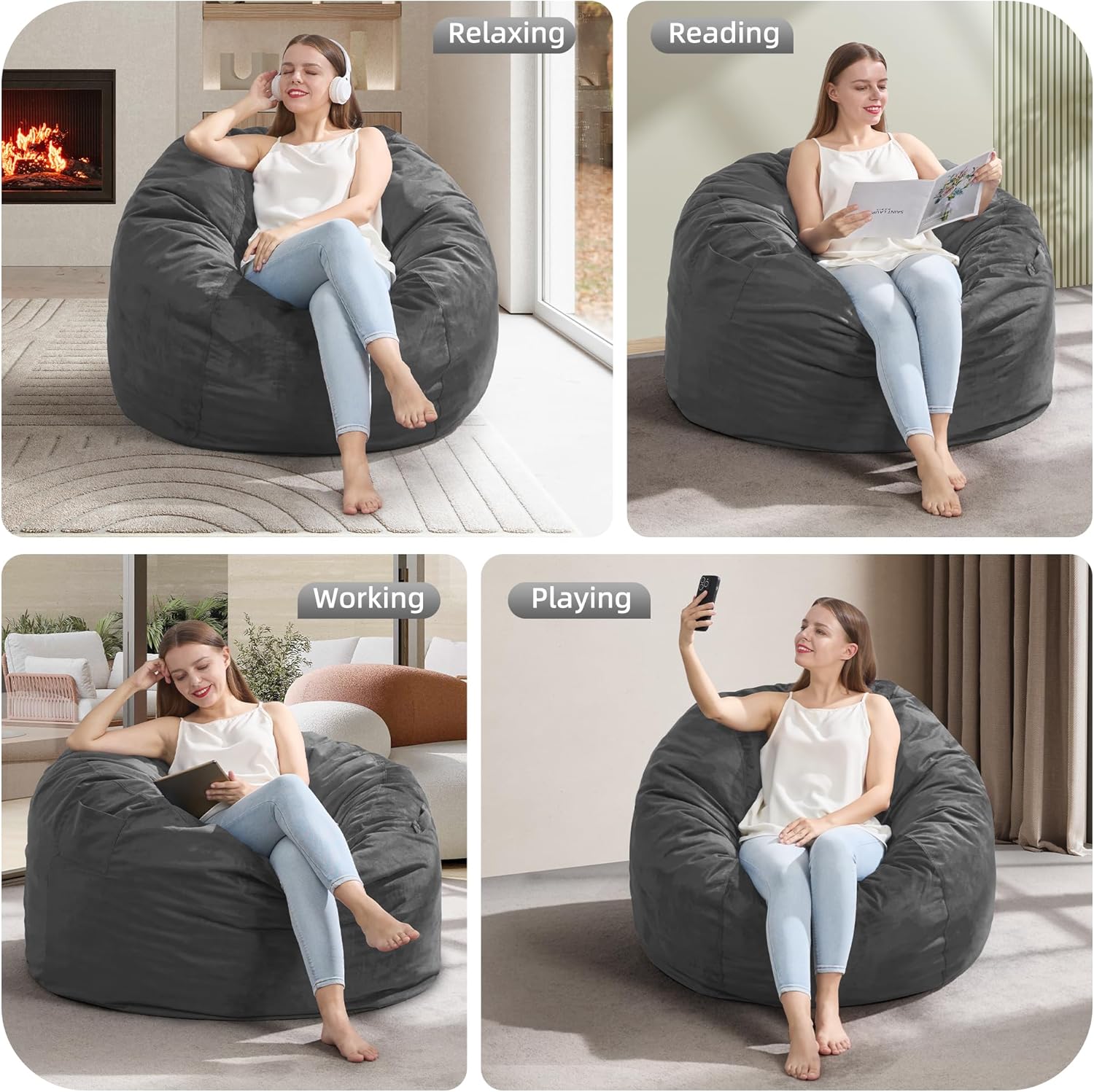 Hobestluk 3FT Bean Bag Chair Giant Bean Bag Chairs for Adults Large Bean Chairs with Removable Cover, Beanbag Chair with Filler, Adult Bean Bag Chairs for Living Room, Bedroom