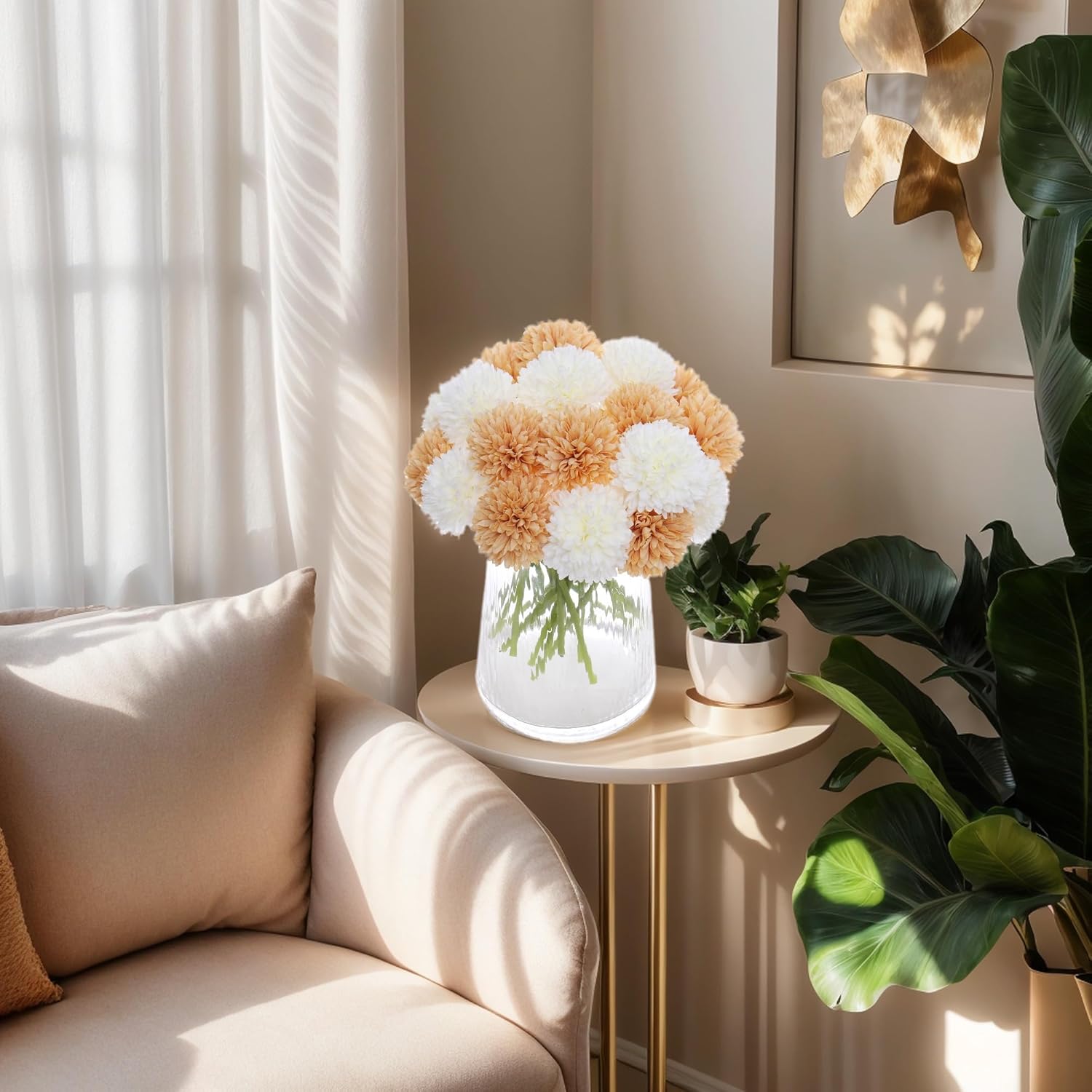Kimura's Cabin 20Pcs Fake Mums Flowers Artificial Silk Chrysanthemum Faux Ball Flowers for Spring Wedding Arrangements Home Indoor Kitchen Table Centerpiece (White Champagne)