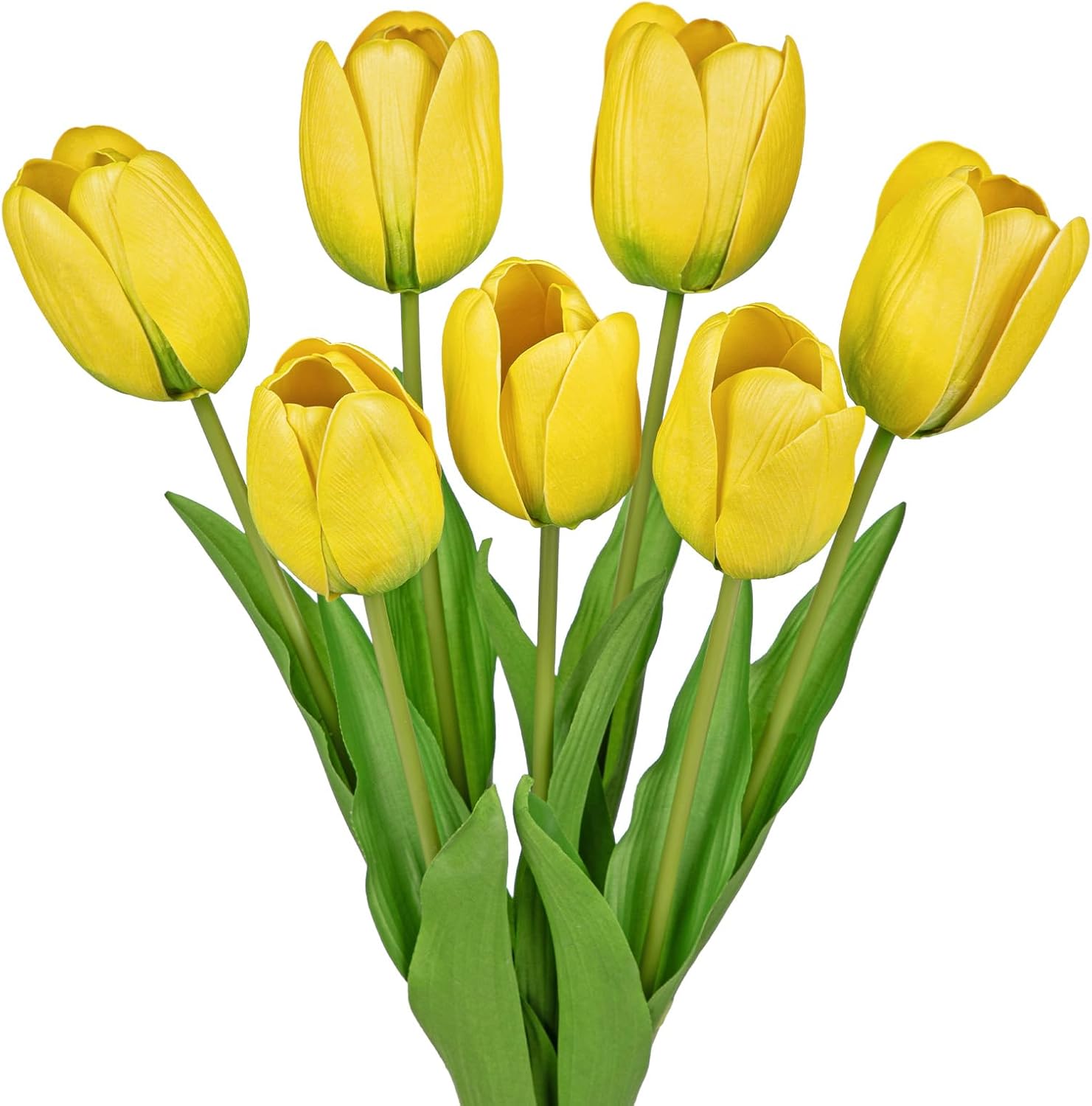 Artificial Tulips Flowers – 24" Long Stem Faux Tulips, 7PCS Real Touch Fake Yellow Tulip for Vase, Farmhouse, Kitchen, Spring & Wedding Home Decor