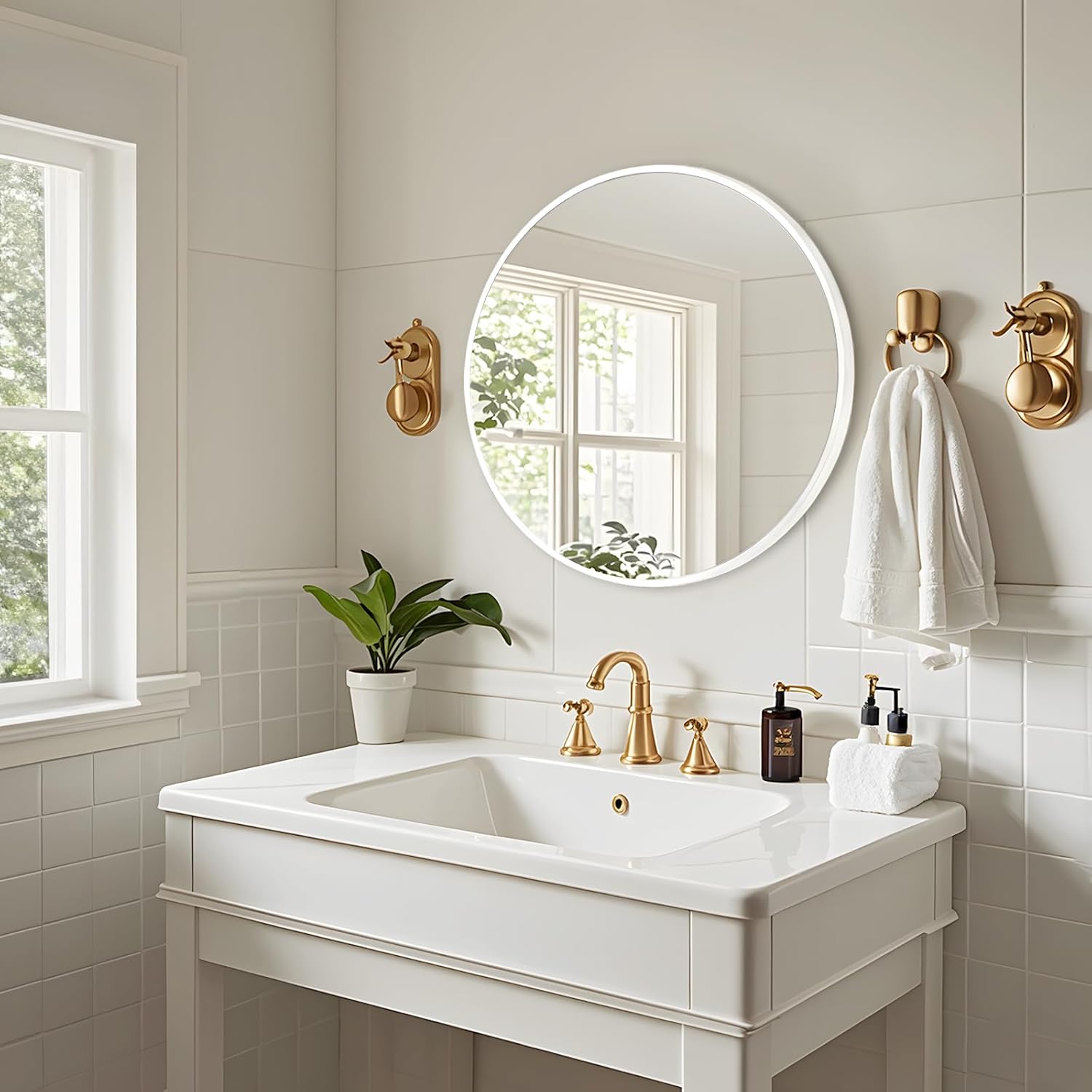 Fabuday White Circle Mirror for Wall 24 inch - Round Mirror for Bathroom, Entryway, Living Room, Hallway, Vanity Decor, Big Matte Metal Frame Mirrors