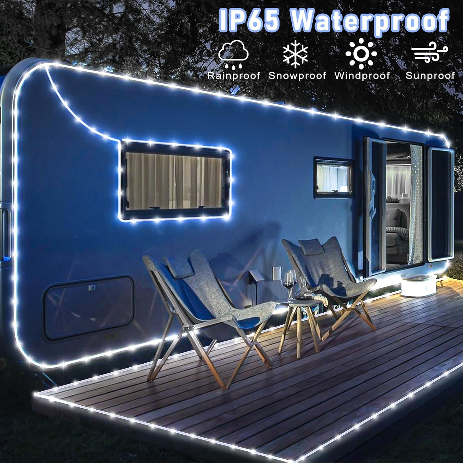 - ăWaterproof Outdoor String Lightsă- IP65 Waterproof, they are suitable for all weather use, remaining bright and sparkling even during strong rain and windy days. The outdoor rope lights is ideal for year-round outdoor decor and can illuminate gazebos, canopy, corridors, gardens, and patios. But please note the plug is not waterproof.
