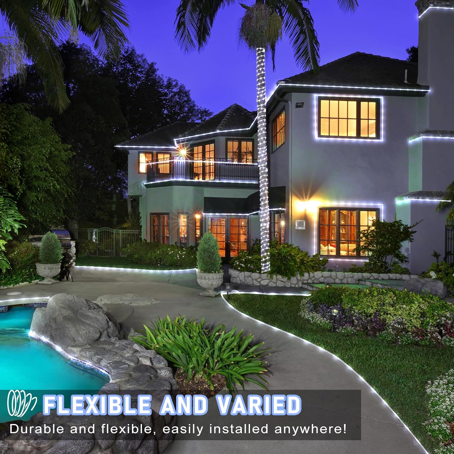 - ăVersatile Decorative Lightsă- The tube lights are not only suitable for birthday parties, Christmas, Easter, Halloween, carnival, prom, and weddings, but also for daily use. The rope lights can be used to decorate camping, pool, wedding, party, buildings, windows, walkways, patios, gardens, fences, porches, restaurants, clubs, bars.