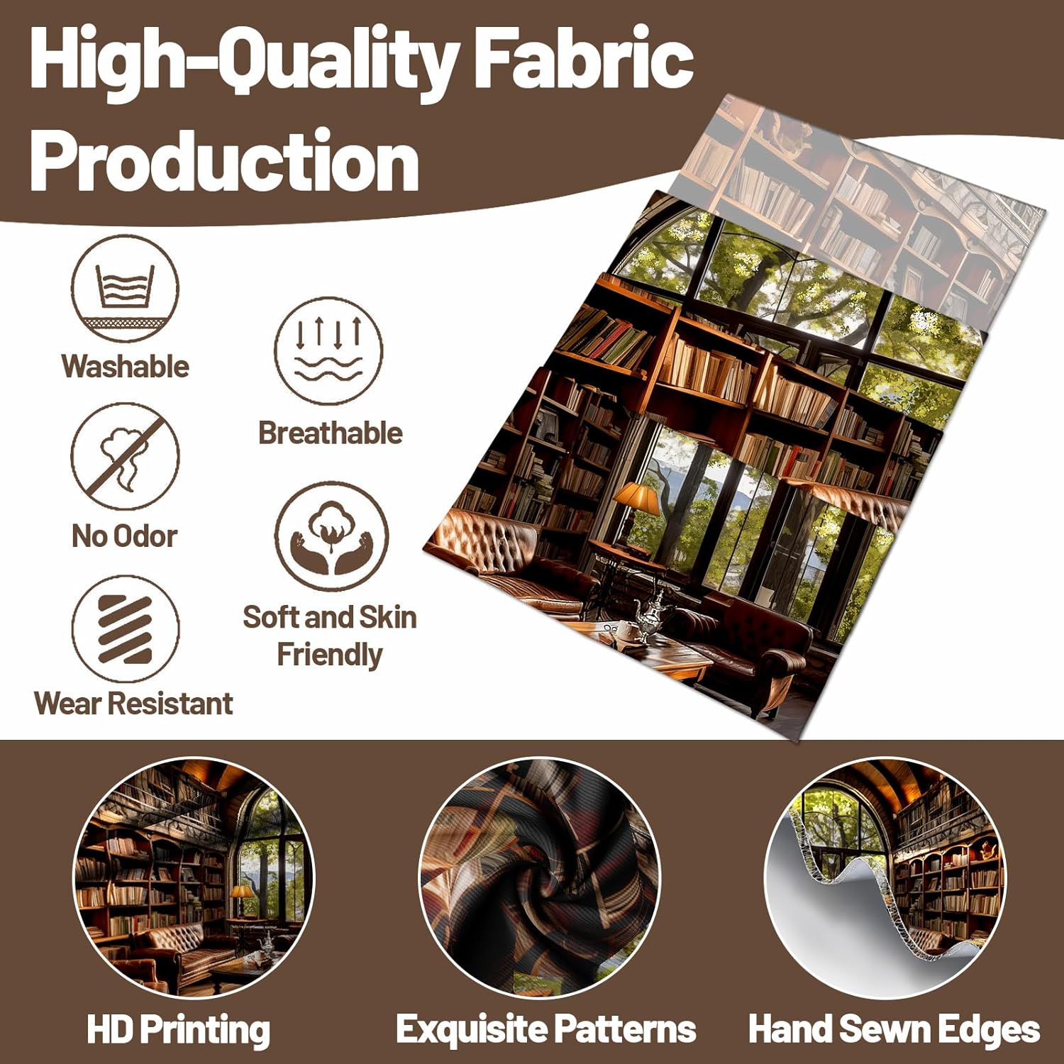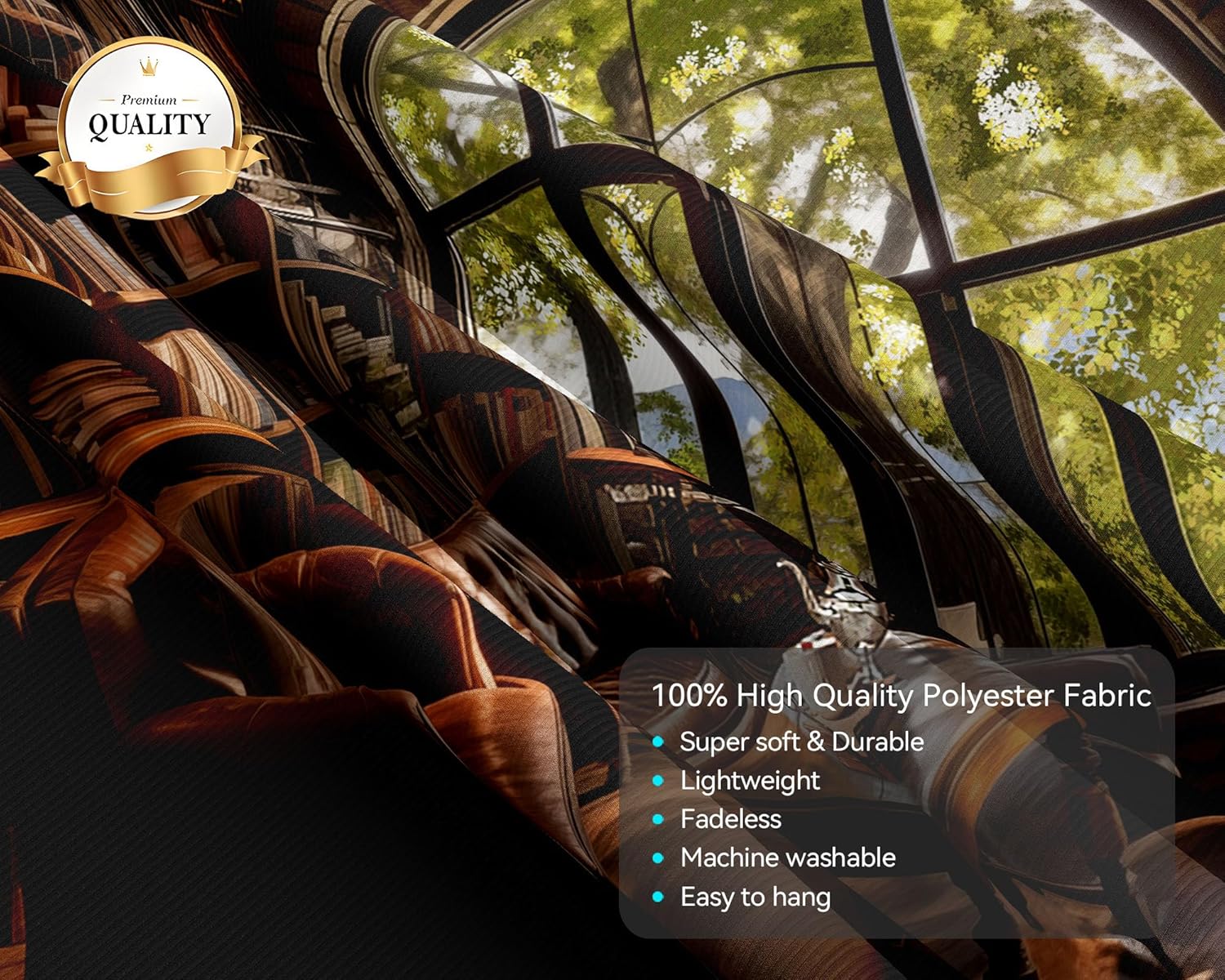 - Fabric: Library tapestry is made of polyester fabric, which is soft, comfortable, durable, breathable and wrinkle-proof. It is not easy to fade and can maintain its original beauty for a long time.