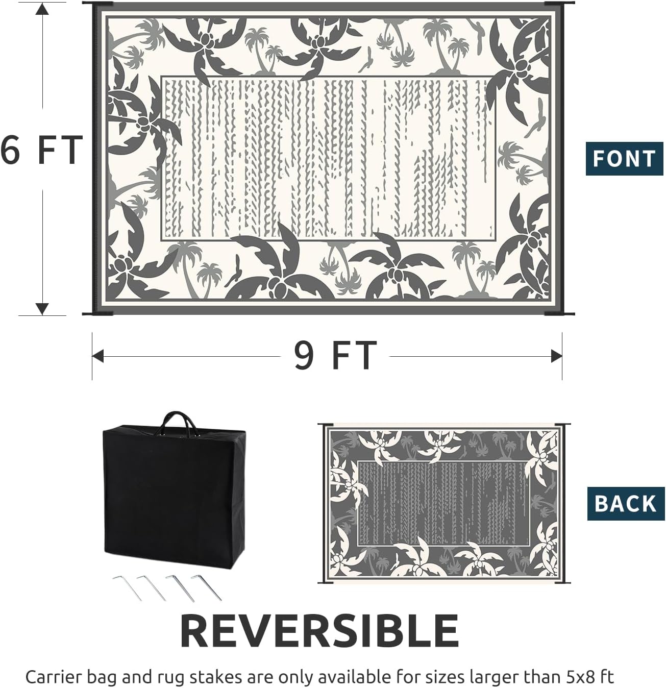 COCOER Outdoor-Rug 6x9 ft Waterproof Reversible Outdoor Plastic Straw Rug RV Indoor Outdoor Carpet Quick Dry Patio Rug Camping Mat for Balcony Backyard Picnic Beach-Grey&Beige