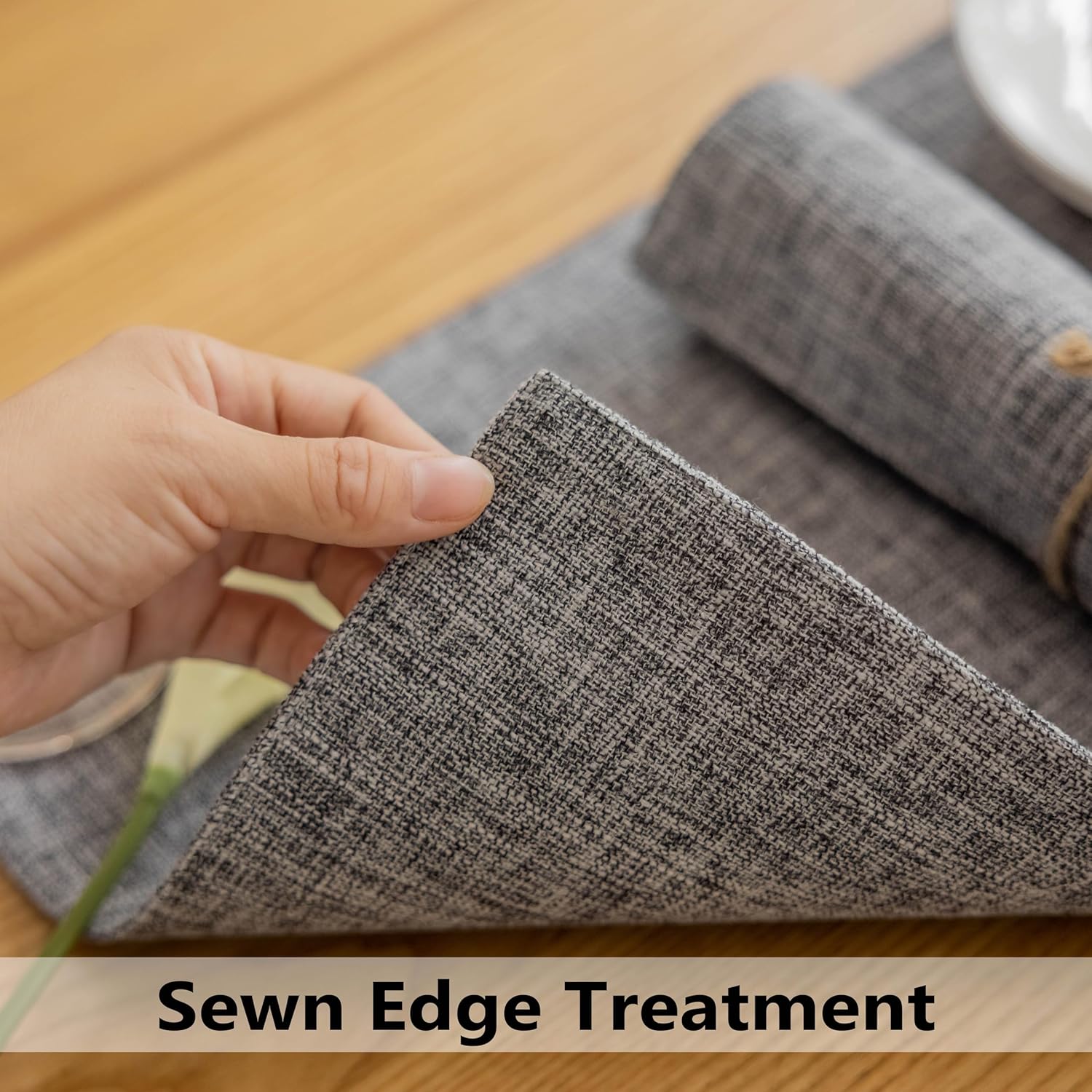 - Premium Fabrics: Our place mats are made of faux linen fabric, eco-friendly and durable placemats with exquisite workmanship which can be used for a long time. Not waterproof and liquid can go through placemats.