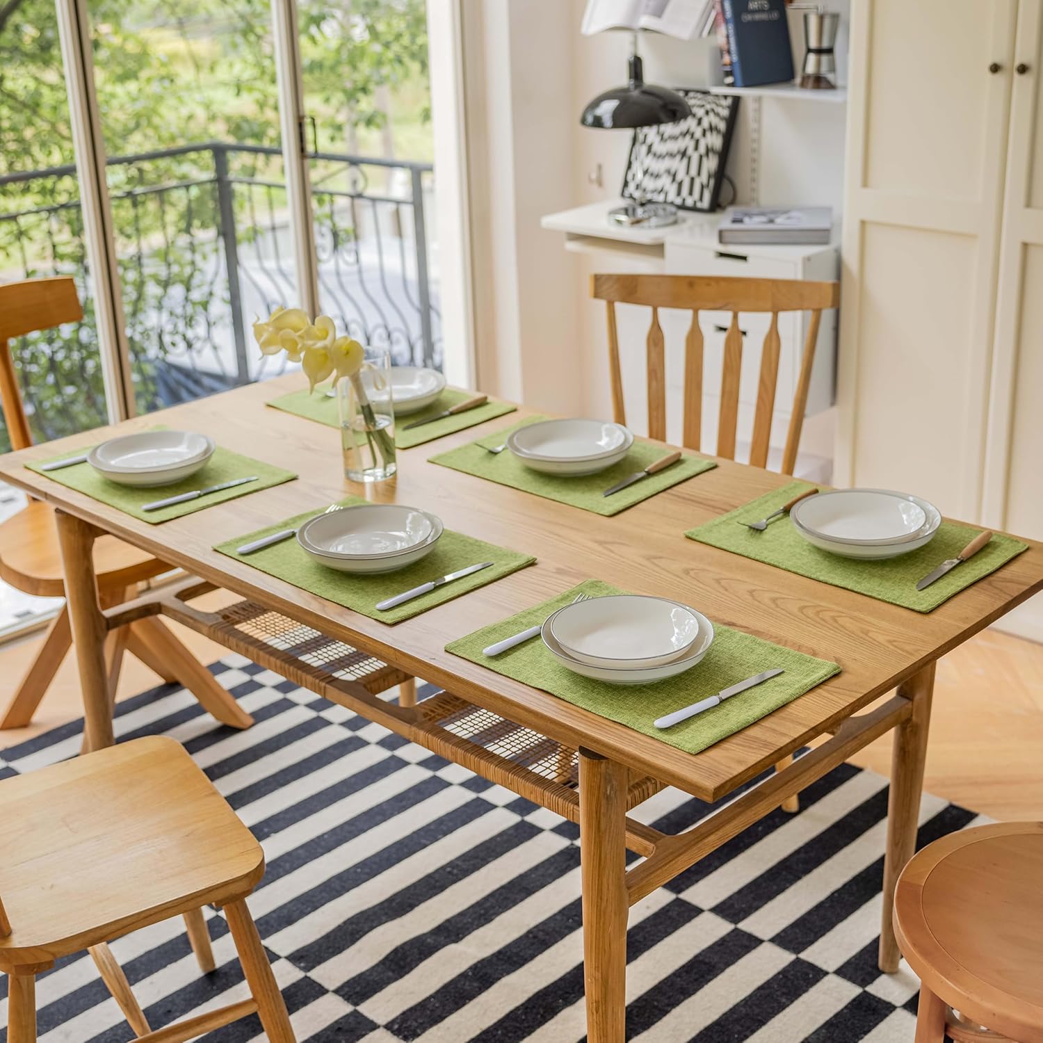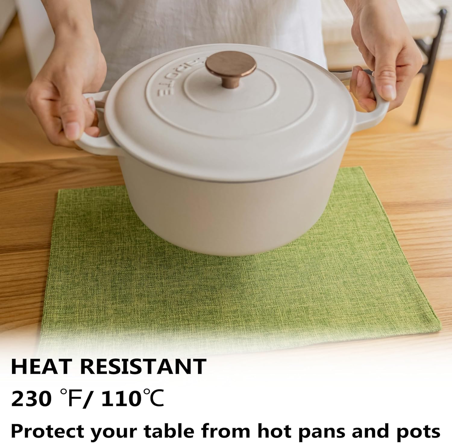Demetex Table Placemats Set of 8 Olive Green Linen Place Mats Washable Fabric Plate Mats for Picnic Camping Barbecue, 13x19 inch, Lime Green