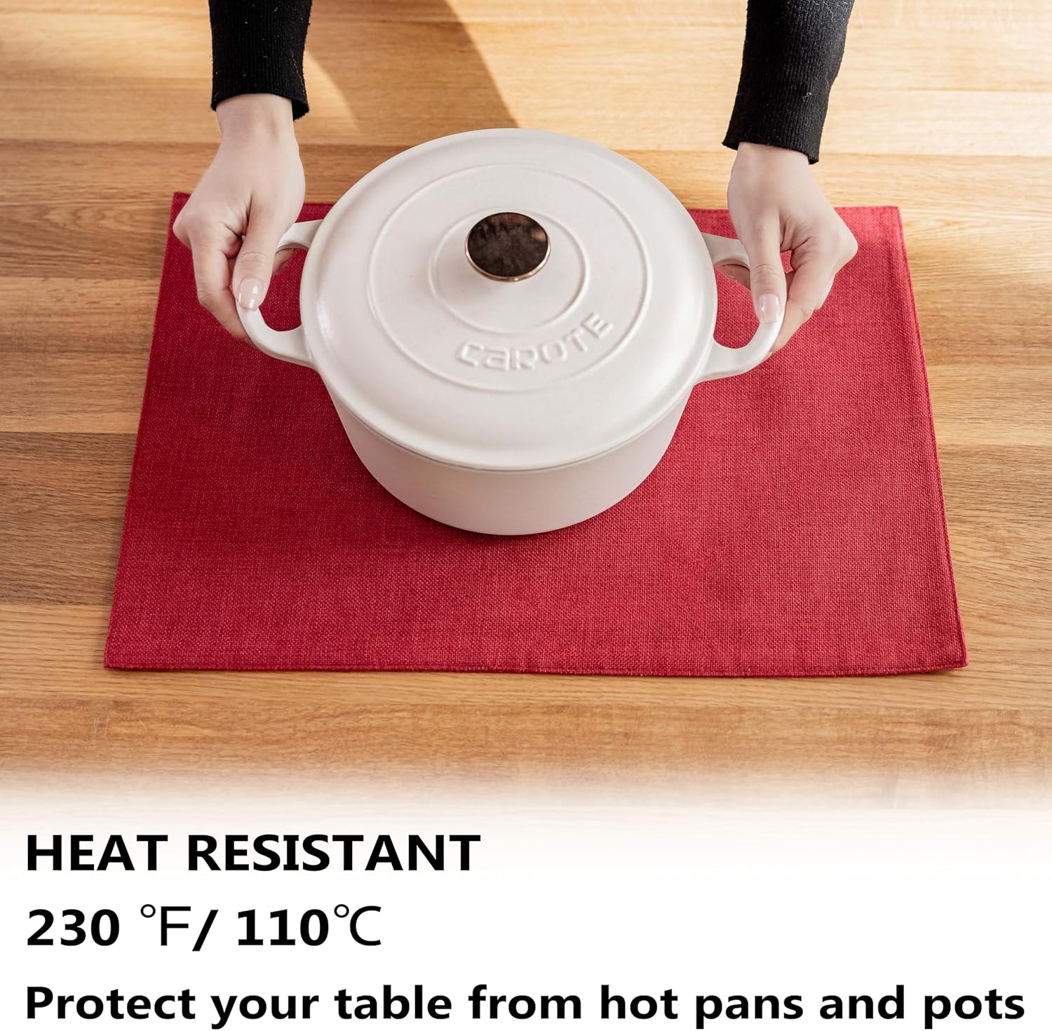- Premium Fabrics: Our place mats are made of faux linen fabric, eco-friendly and durable placemats with exquisite workmanship which can be used for a long time. Not waterproof and liquid can go through placemats.