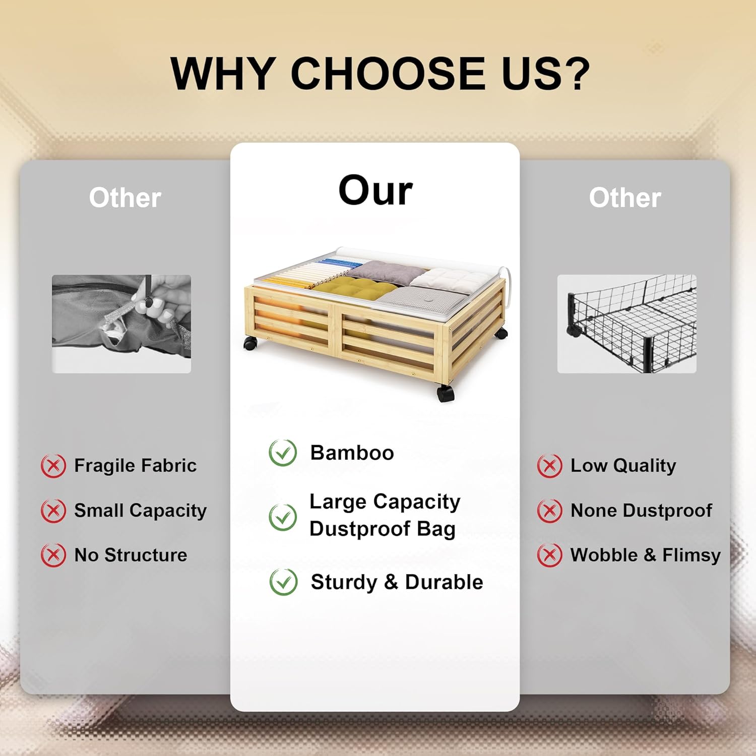 - 【Sturdy & Durable】Made from 100% natural bamboo; supports up to 120 lbs; includes a dust-proof bag for seasonal clothing and essentials
