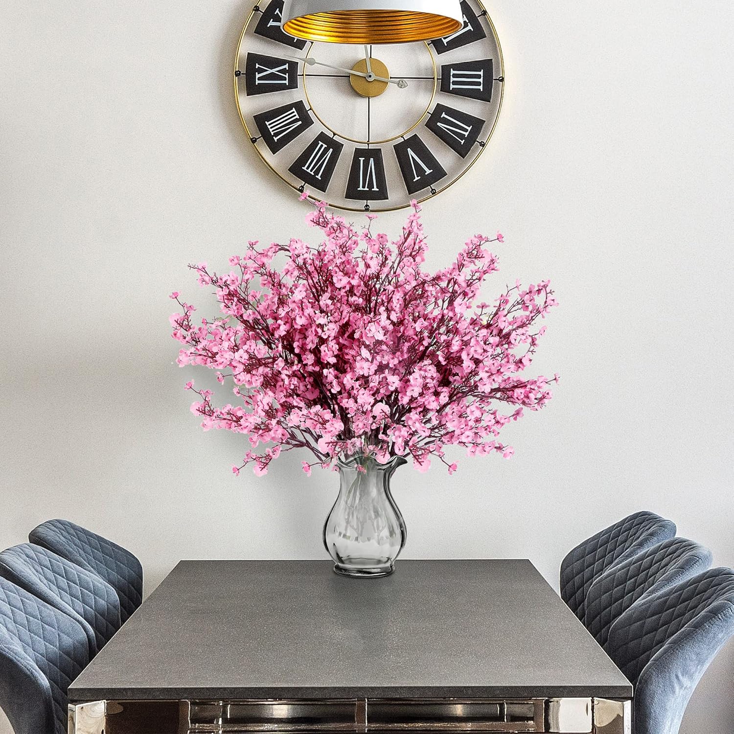 Sggvecsy 6 Pcs Babys Breath Artificial Flowers Gypsophila Bouquets Bulk Real Touch Fake Silk Flowers for Home Wedding DIY Floral Arrangement Kitchen Table Centerpiece Festival Decoration (Pink)