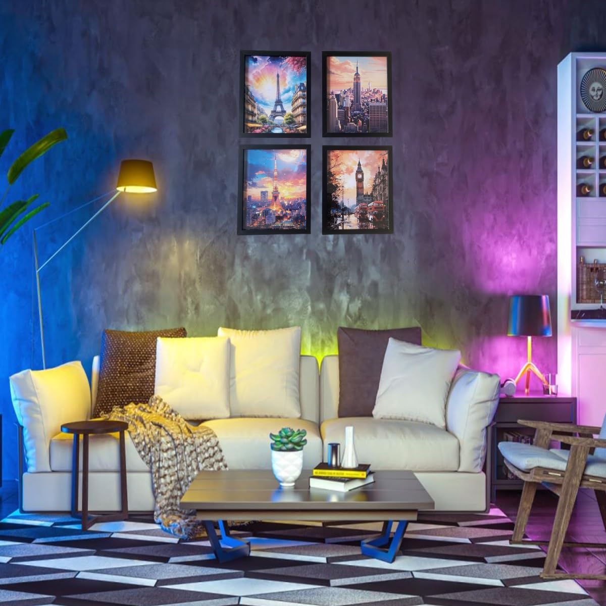 Boho Wall Art Decor,New York, London, Tokyo, Paris, Eiffel Tower,City Wall Decor Art,Modern Landscape Wall Art for Living Room Bedroom Prints Poster,8x10 Inch Set of 4,Framed