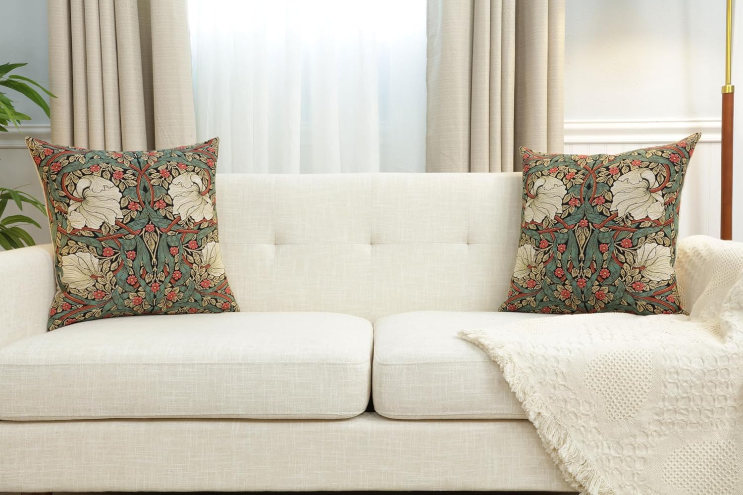 - ELEGANT RED-GREEN FLORAL DESIGN: Bring timeless botanical beauty into your space with this 18" x 18" tapestry throw pillow cover. The Pimpernel Red Green floral pattern evokes classic garden motifs in rich, earthy tones—ideal for seasonal refreshes or year-round nature-inspired décor on beds, sofas, or chairs.