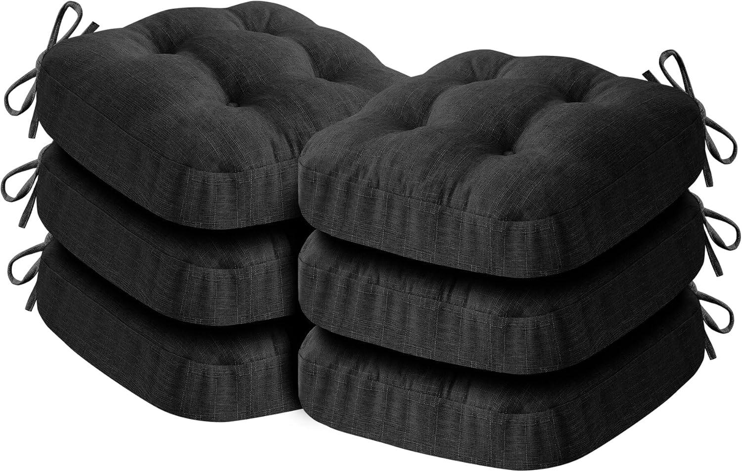 Chair Cushions for Dining Chairs, Dining Chair Cushions, Tufted Indoor Chair Pads with Ties & Non Slip Backing, Seat Cushions for Kitchen Chairs 16.5” x 16.5” x 3.5”, Set of 6, Black