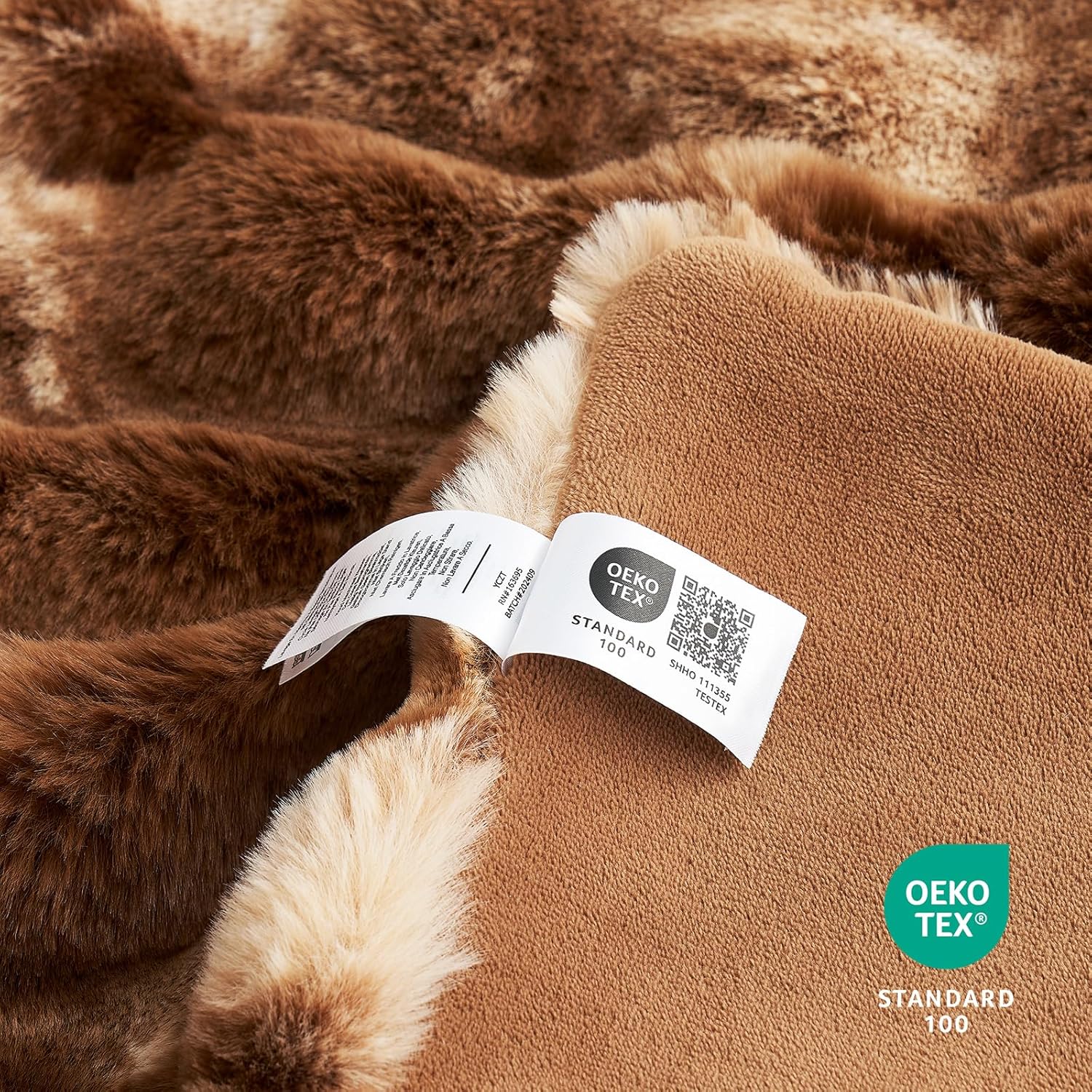 Cozy Bliss Faux Fur Throw Blanket for Couch, Fuzzy Soft Plush Thick Bubble Blanket for Sofa Bedroom Living Room, 60 * 80 Inches Tie Dye Brown
