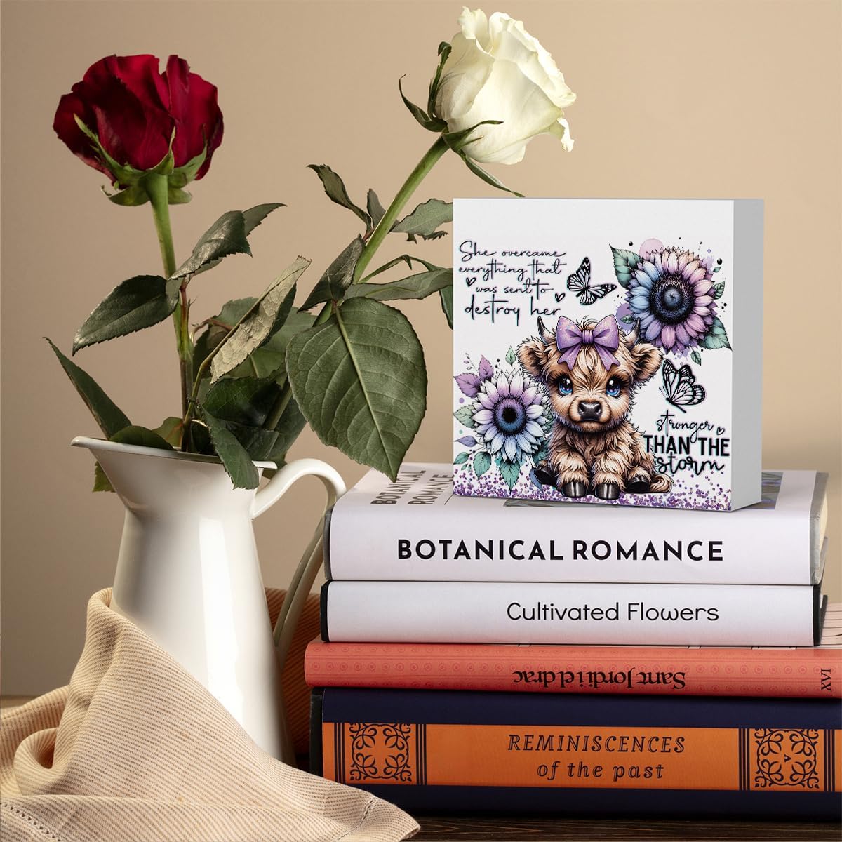 Cute Highland Cow Baby Decor, Highland Cow Sunflower Decor, Highland Cow Gifts for women, Highland Cow Nursery Decor, Wooden Box Decor Sign for Home Farmhouse Office Living Room Table Shelf