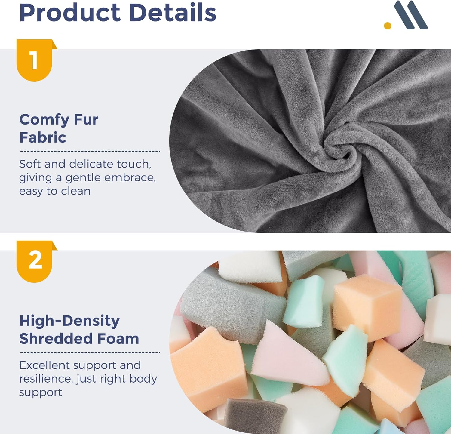 MAXYOYO Bean Bag Chair, Comfy Bean Bag Sofa with Back Support, Faux Fur Bean Bag Chair for Adults and Kids, Stuffed Floor Sofa for Living Room, Bedroom, Apartment, Grey