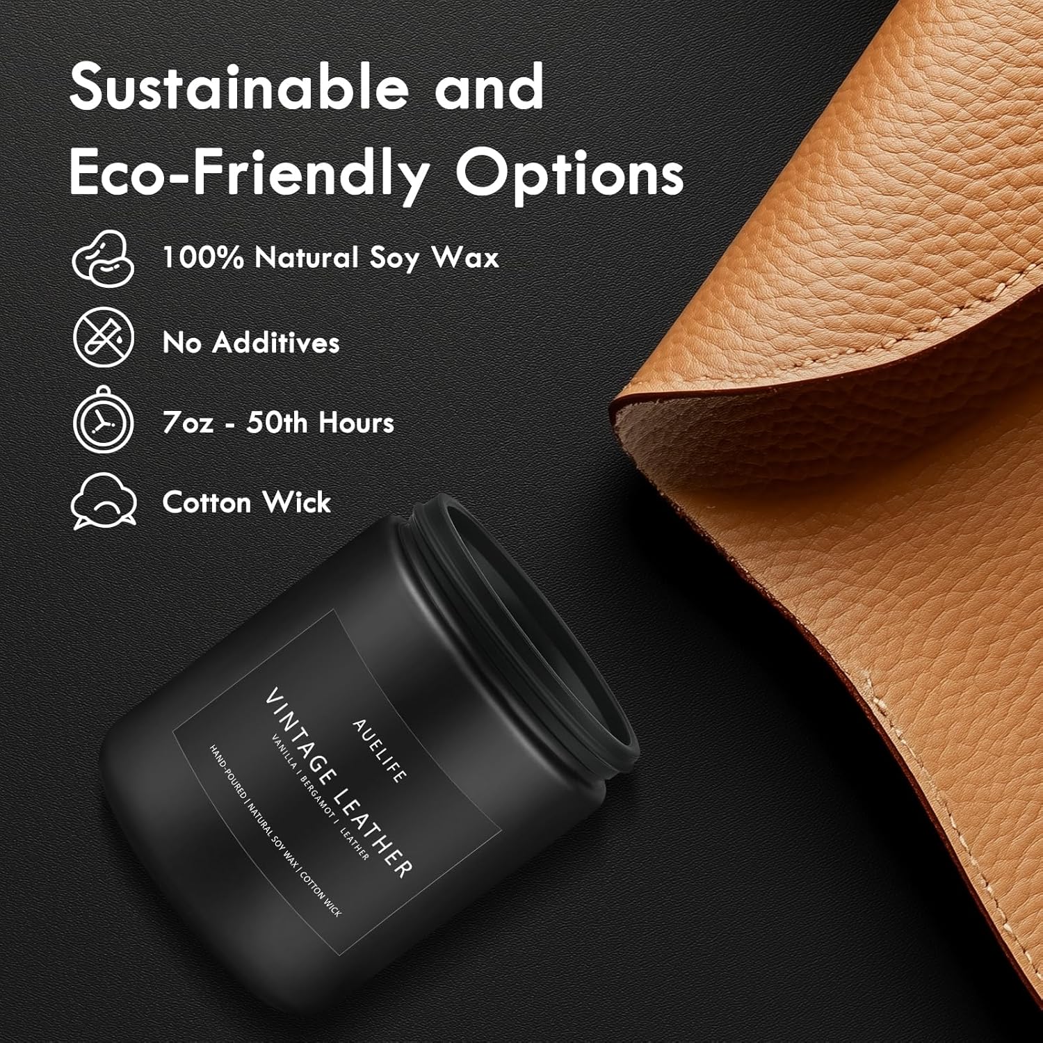 - A Great Gift Idea for Anyone -- A scented candle makes an elegant gift for anyone who appreciates refined fragrances or who has a penchant for classic design. It’s a gift that speaks to a sense of sophistication and timeless style, and it’s perfect for those who enjoy high-end home fragrances. Whether for a birthday, anniversary, or holiday occasion, a leather-scented candle is sure to impress.
