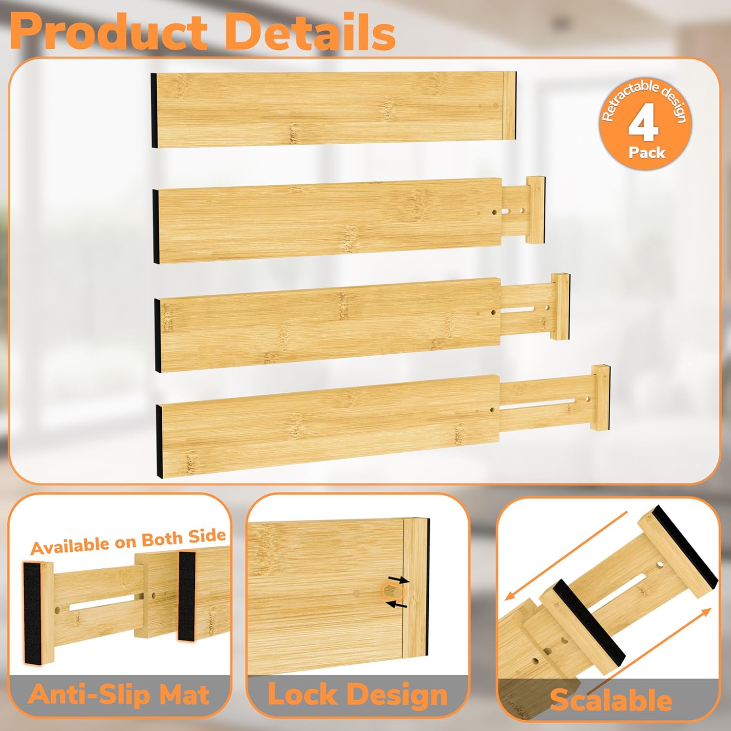 - Premium Bamboo Material: These bamboo drawer dividers are made of high quality bamboo material, natural color, tough texture, smooth surface, well made and long-lasting; Simply wipe it with a damp cloth