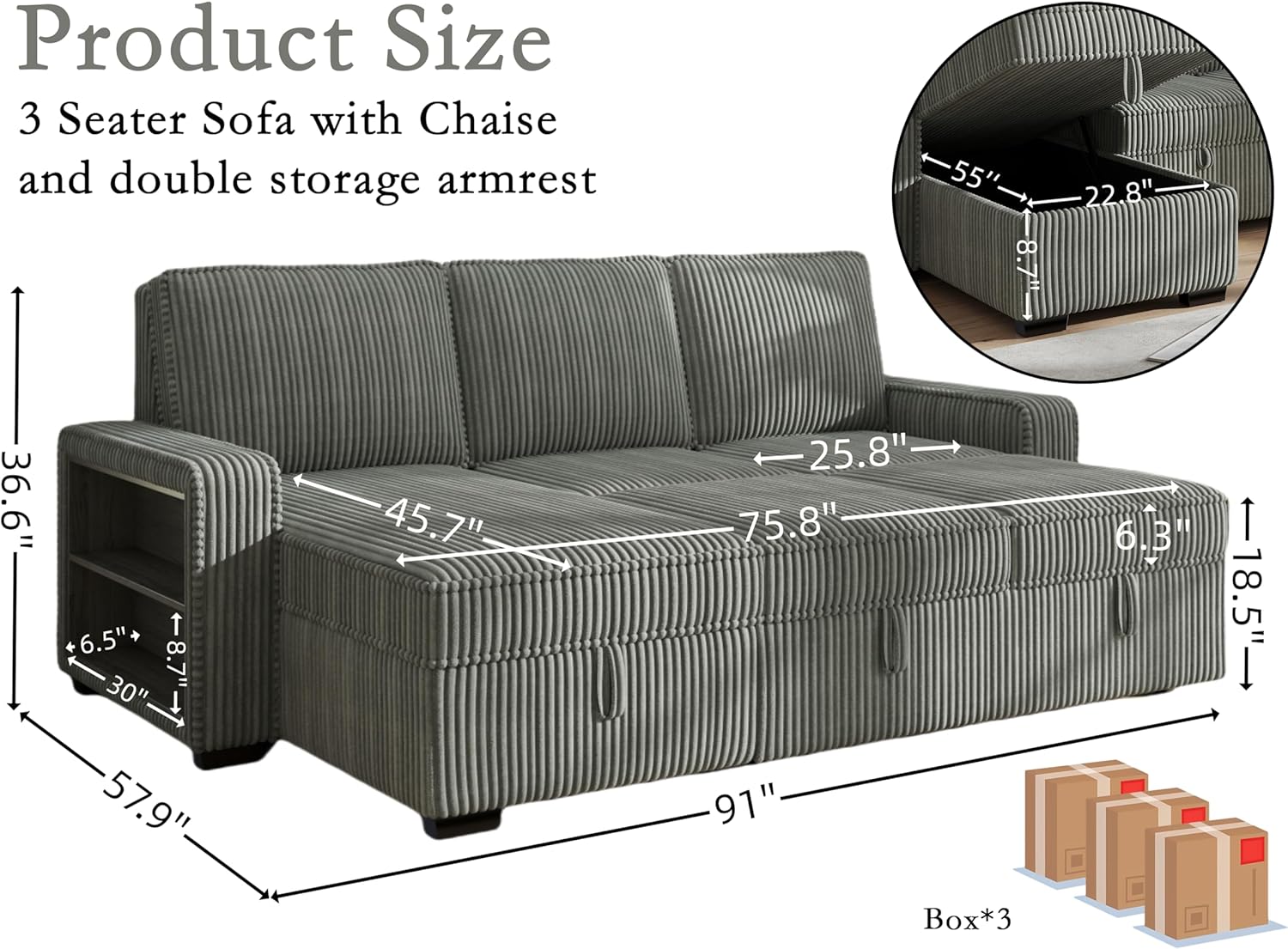 - ăMulti-StorageăEnjoy ample storage space with built-in pockets on the chaise and armrests. This sleeper sofa with storage allows you to keep blankets, remote controls, books, snacks and other essentials within reach, adding convenience to your everyday life. The storage and pull-out bed design makes it a practical choice for any home