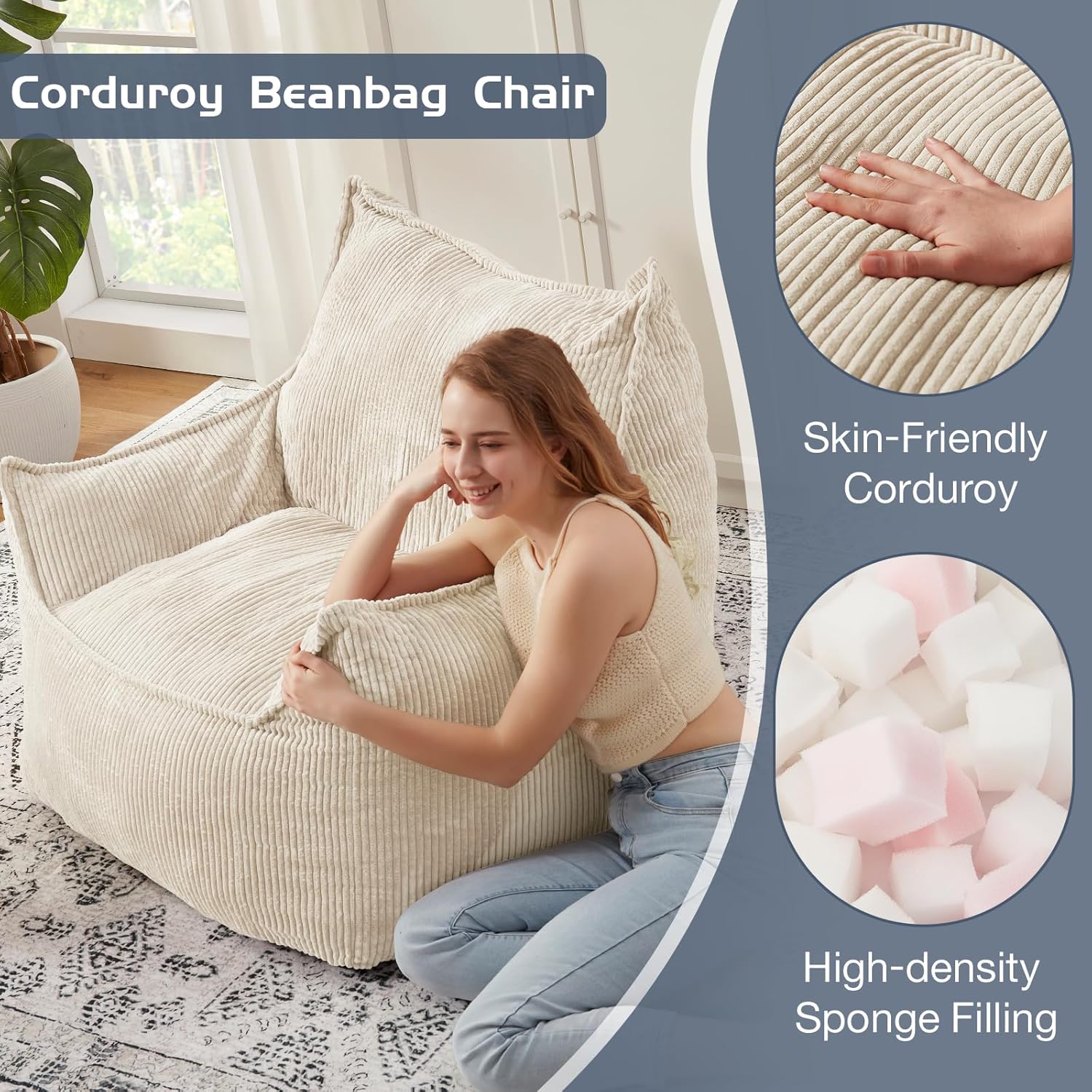 - ăMULTIPLE USAGEă: Corduroy bean bag sofa chair will blend into any home decor styles, and suitable for various rooms, perfect for bedroom, living room, game room, study room, office or apartment. Providing comfort and support while reading, playing, gaming, sleeping, watching TV, etc.