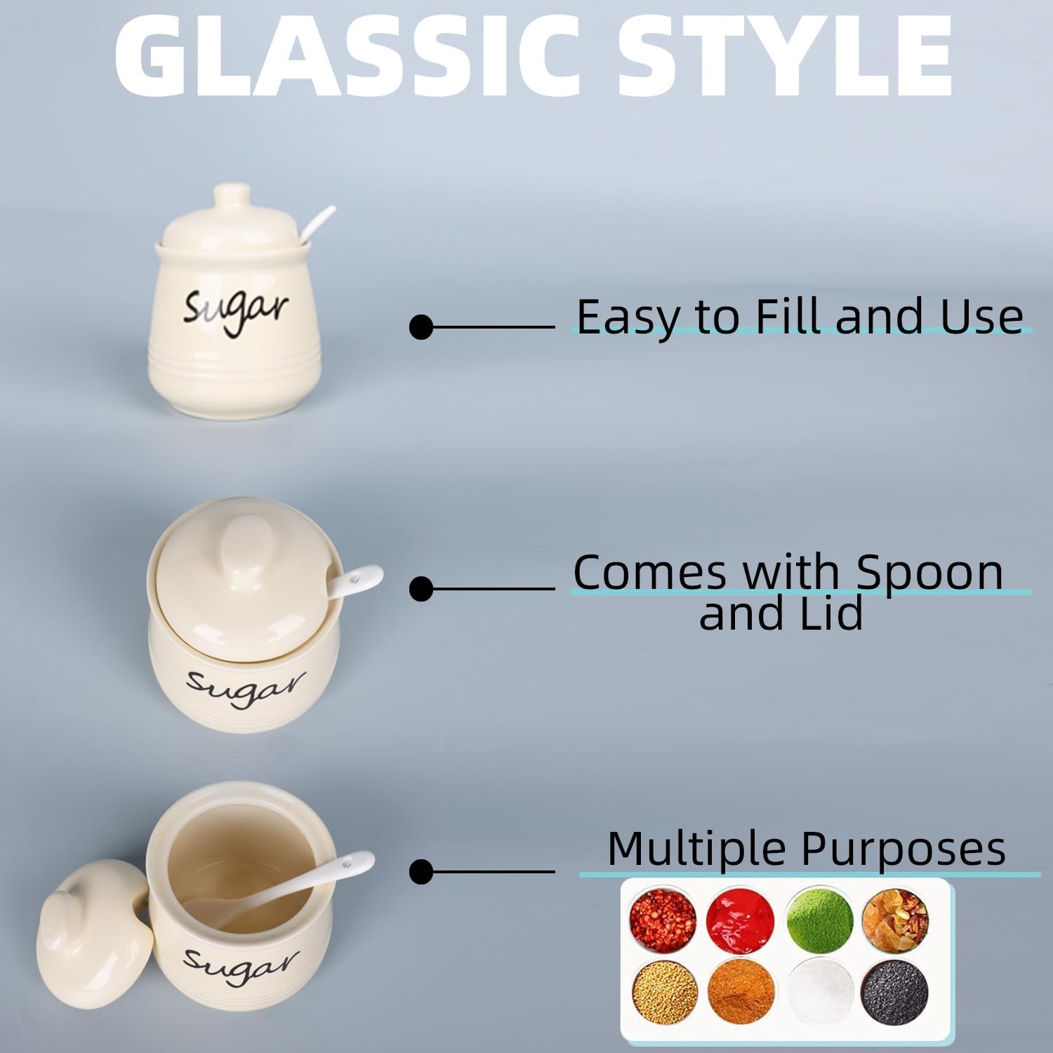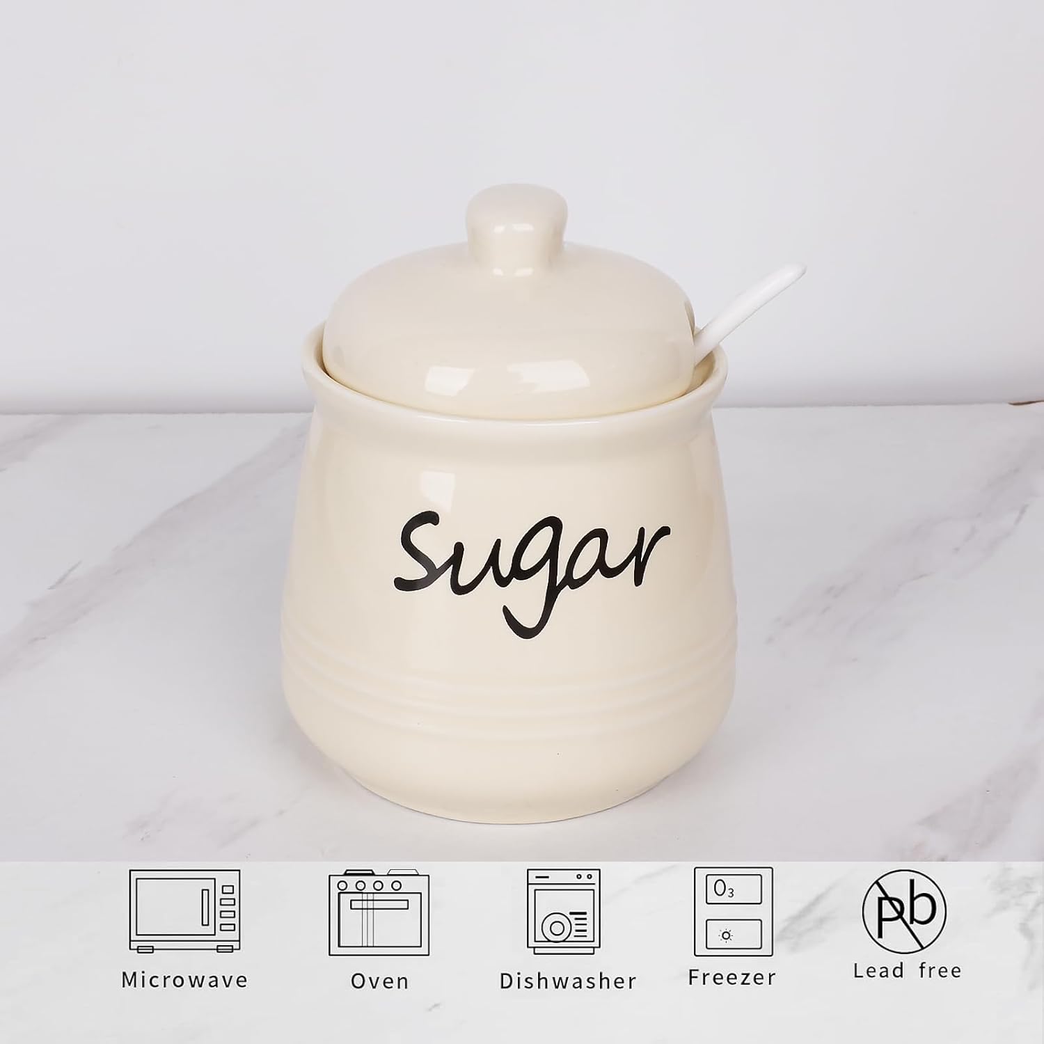 - DESIGN CONCEPT: This sugar bowl is equipped with a lid and a small spoon. The lid can keep your ingredients away from dust. There is a perfect notch on the lid for placing the spoon, so you donāt have to worry about placing the spoon randomly
