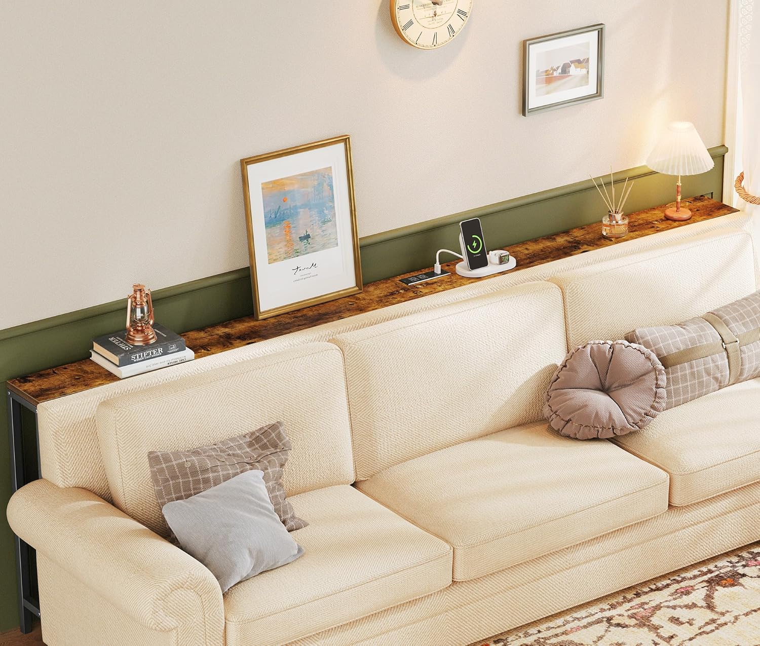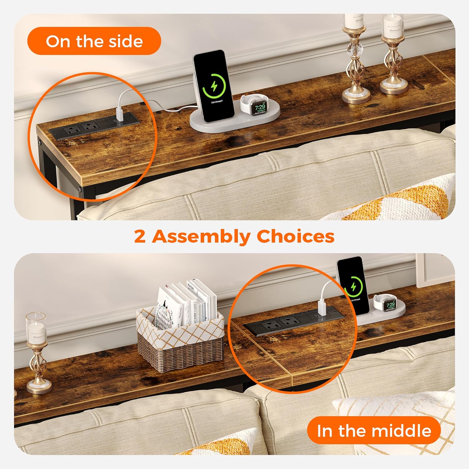 SUPERJARE 78.7 Inch Console Table with Outlet, Sofa Table with Charging Station, Narrow Hallway Entryway Table, Behind Couch Table, for Living Room, Rustic Brown