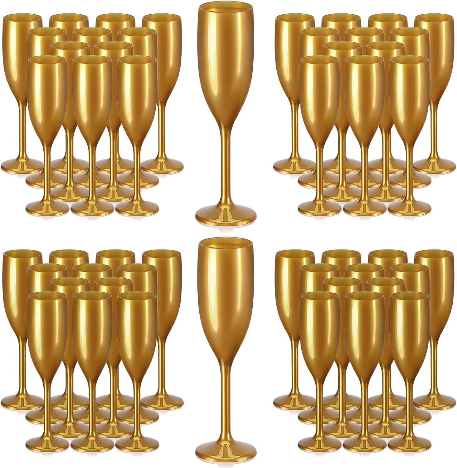 XUWAIDSGN Acrylic Champagne Flutes Toasting Glasses Unbreakable Mimosa Bar Reusable Wine Glasses Vintage Champagne Flutes Stemmed Drinking Cups 5.4 OZ for Christmas Birthday (100, Gold)