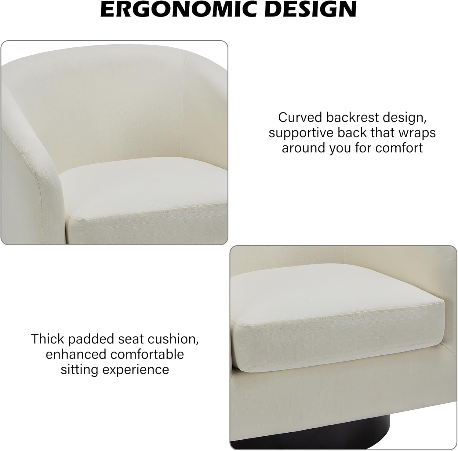 Swivel Barrel Accent Chair, Modern Round Linen Arm Chair for Living Room, Bedroom, Comfy Club Reading Chairs for Adults(Linen Fabric, Beige, Set of 4