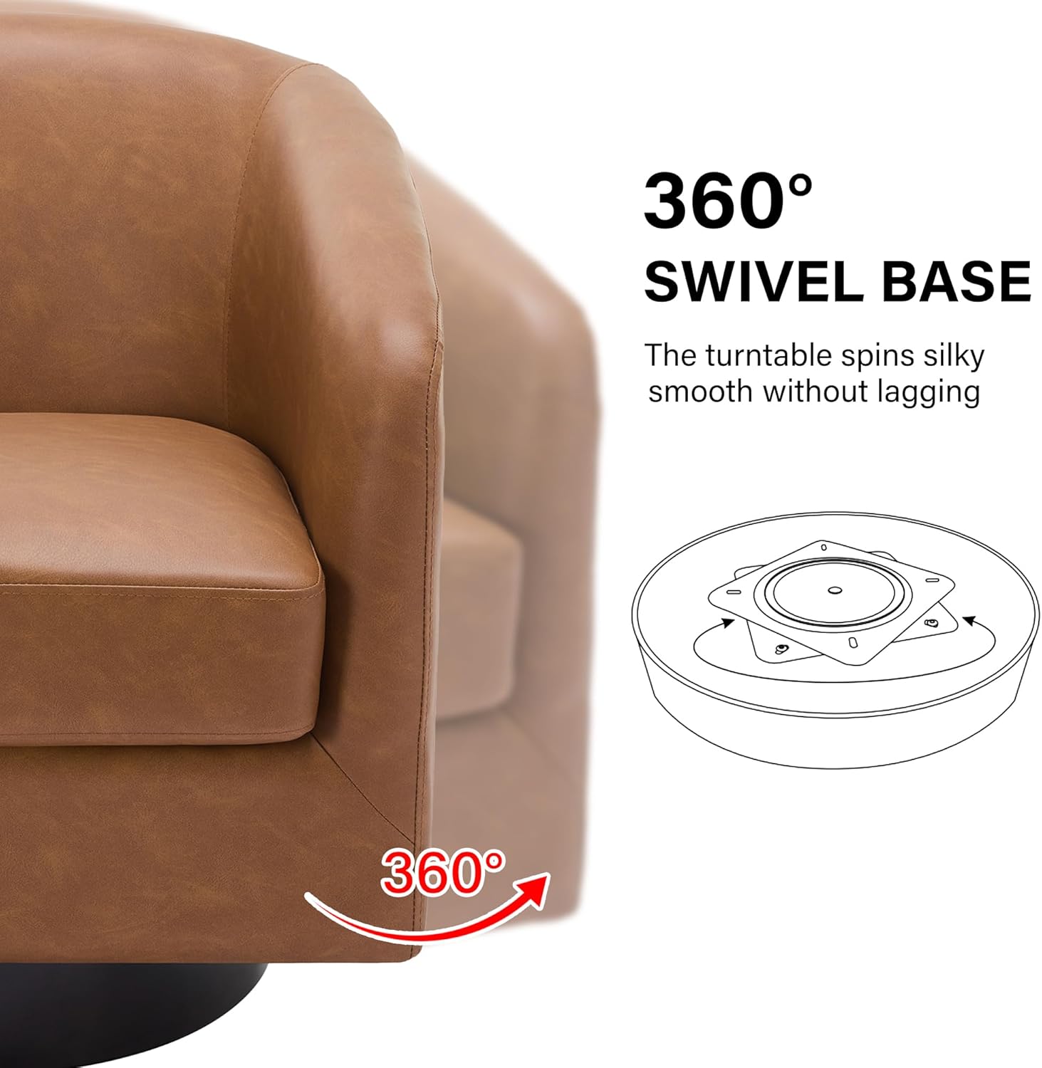 Swivel Barrel Accent Chair, Modern Round Faux Leather Arm Chair for Living Room, Bedroom, Comfy Club Reading Chairs for Adults(Faux Leather, Brown, Set of 4)