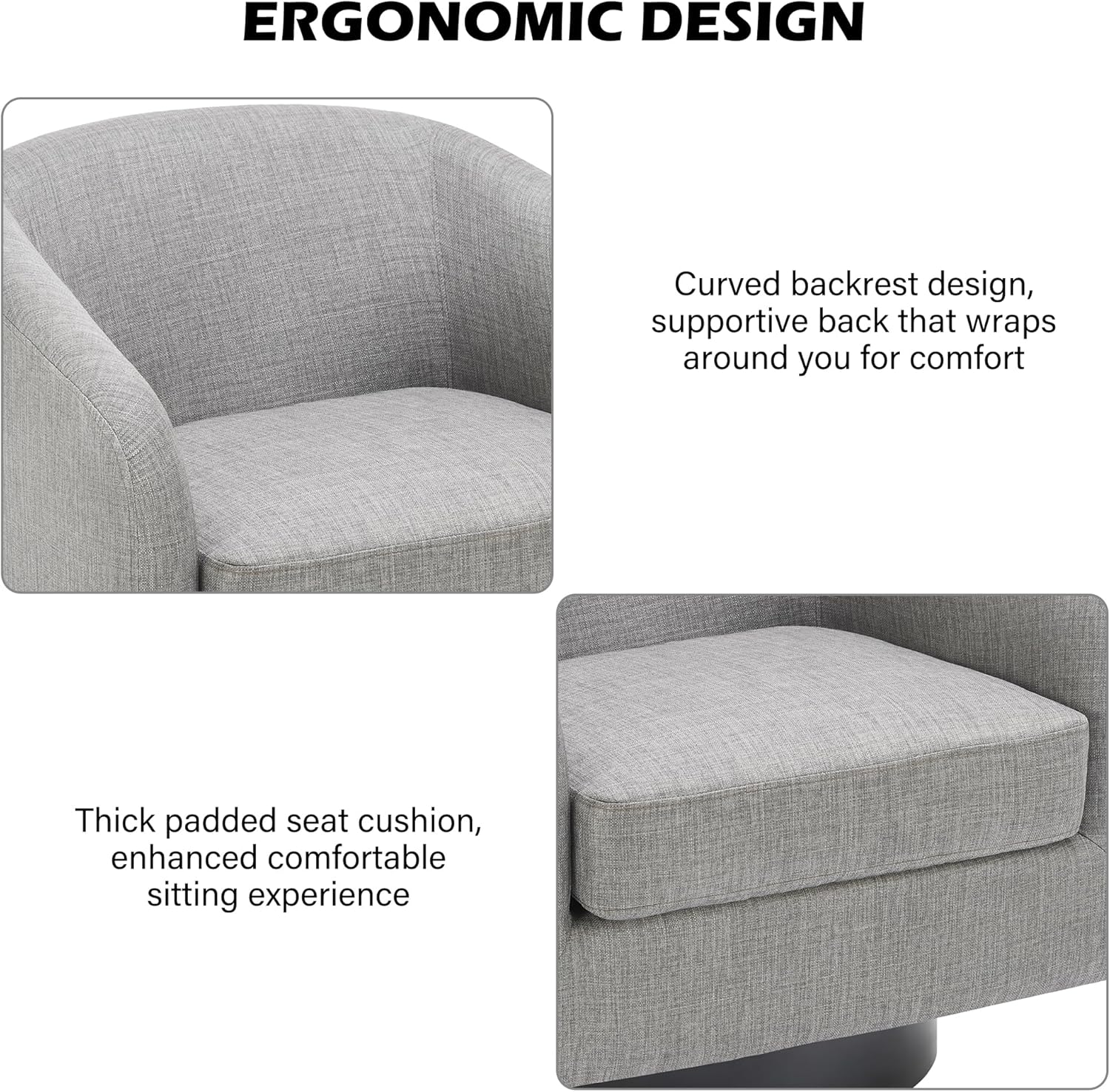 Swivel Barrel Accent Chair, Modern Round Linen Arm Chair for Living Room, Bedroom, Comfy Club Reading Chairs for Adults(Linen Fabric, Light Grey, Set of 4