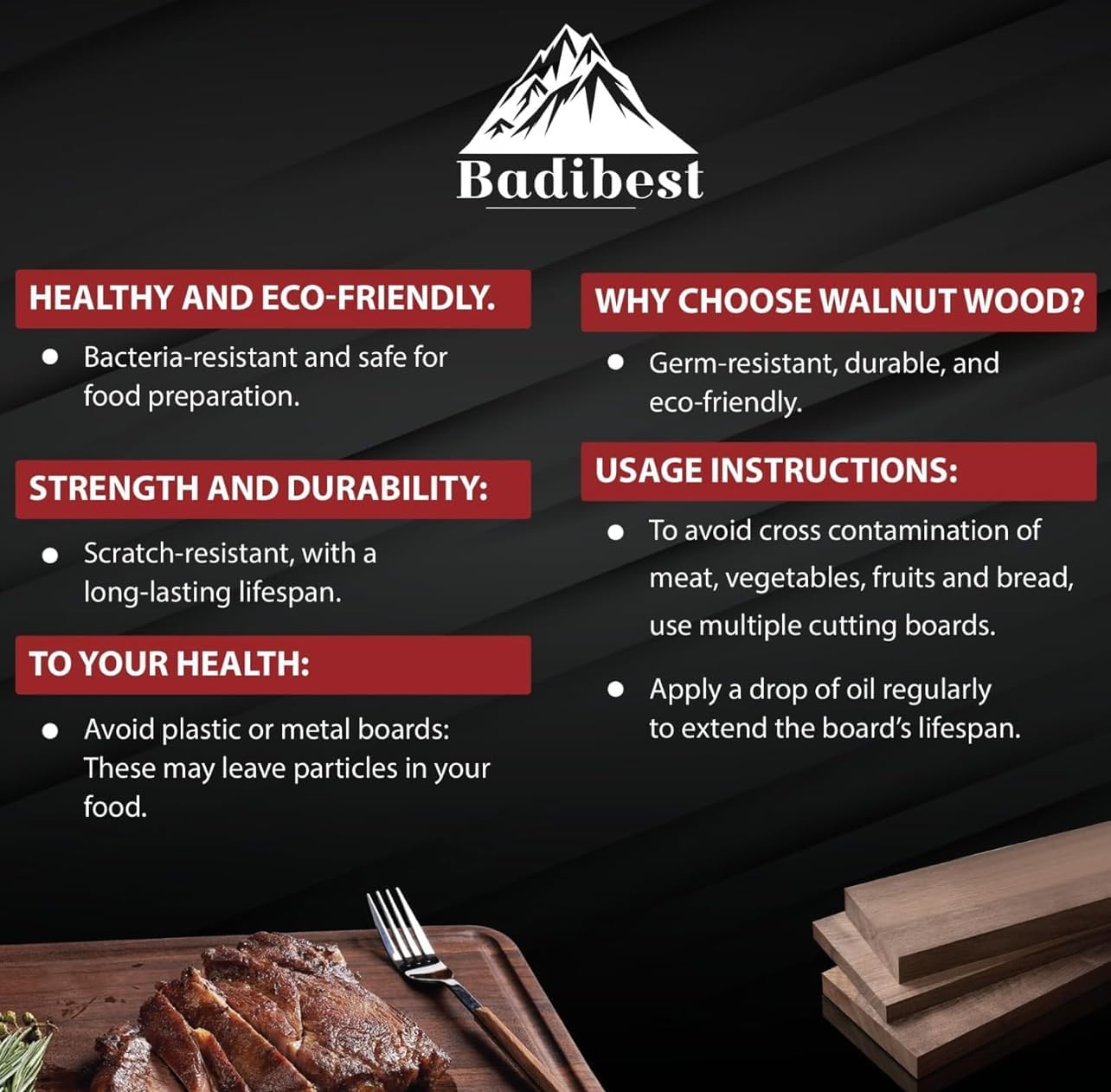 - ใ๐๐๐ง๐ญ๐ฅ๐ ๐จ๐ง ๐๐ง๐ข๐ฏ๐๐ฌ โ ๐๐ฆ๐จ๐จ๐ญ๐ก & ๐๐ฅ๐๐๐-๐๐๐๐ใ:Unlike plastic, bamboo cutting board, or acacia wood cutting board alternatives, this walnut wood cutting boards protects your knives from dulling. The smooth surface of this non toxic cutting board supports clean, effortless cuts, whether you're chopping herbs or carving meat.