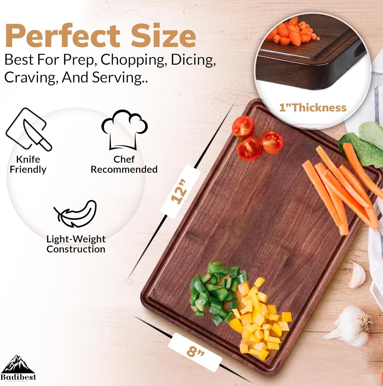 Handcrafted Walnut Wood Cutting Board 12x8, Non Toxic Kitchen Chopping Board with Juice Groove Charcuterie Serving Board, Eco & Knife Friendly Small Wooden Cutting Boards for Kitchen, Restaurant Use