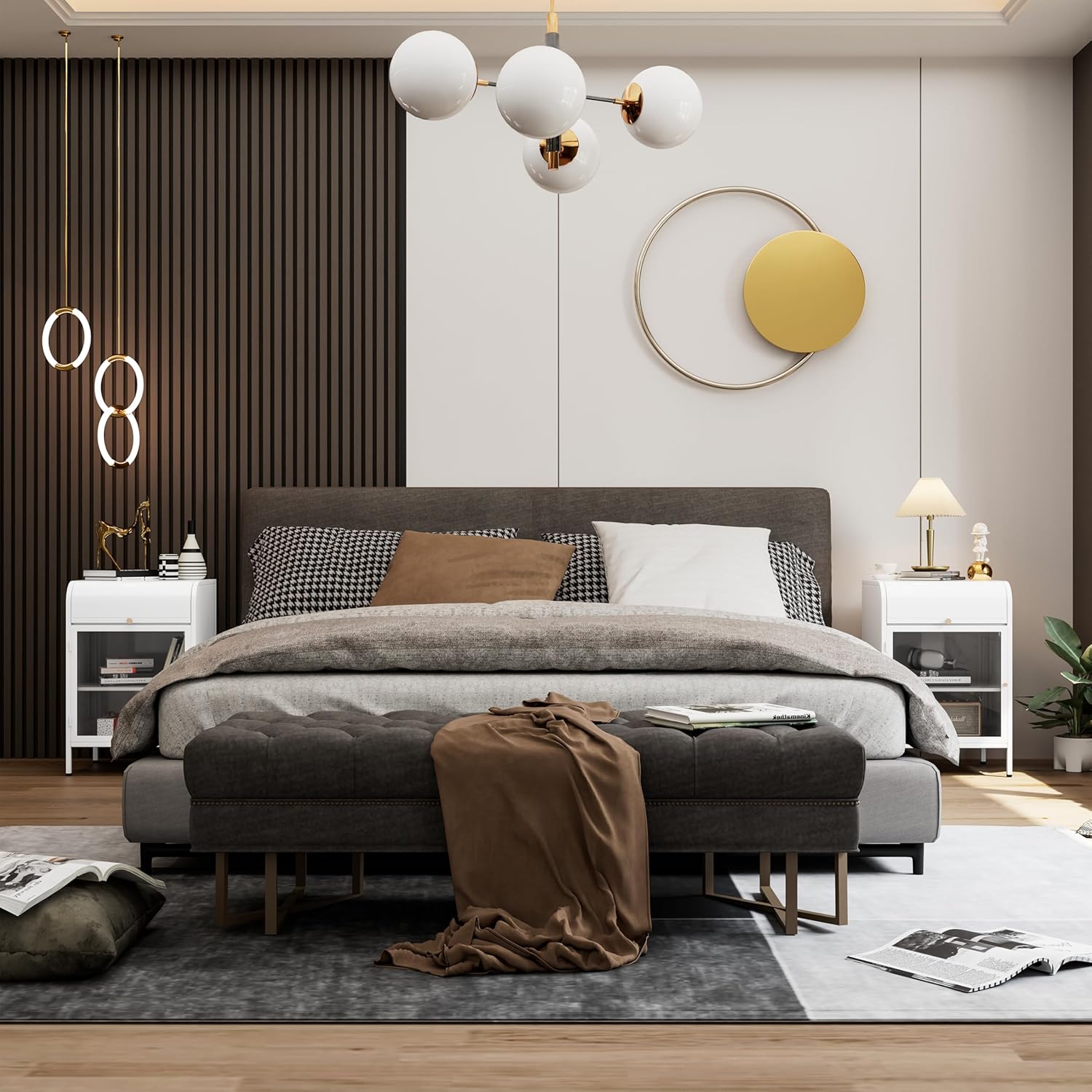 - Stylish Glass Door:Enhance your bedroom decor with our nightstand's chic design. The transparent glass door adds a unique artistic touch, while the metal frame features a sleek matte finish, effortlessly matching any room style. It combines modern and mid century element makes the room look more stylish