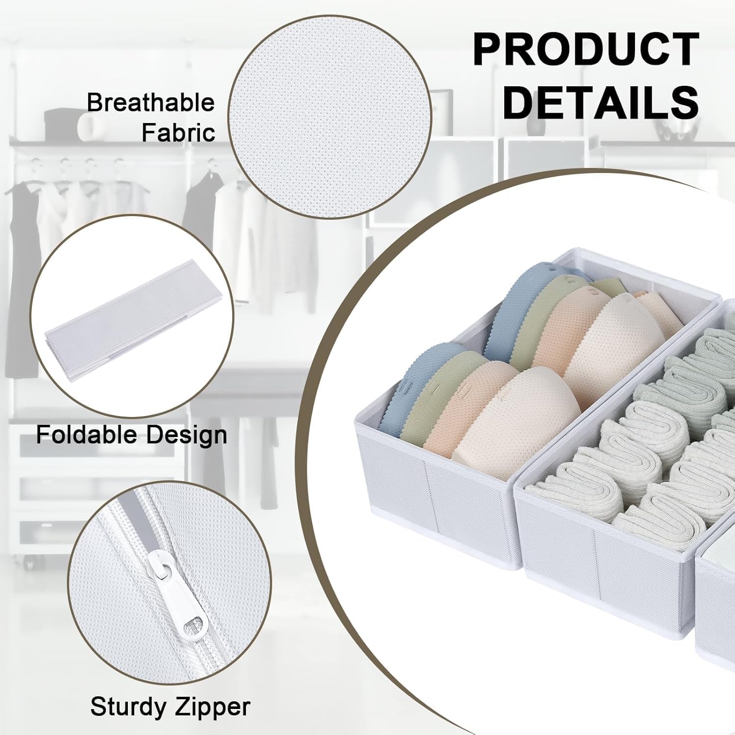 - [Perfectly matching your drawers] : This clothes organizer set includes 18 storage bins in various sizes to fit all your needs: 6 large (11.8*11.8*3.54"), 6 medium (11.8*5.9*3.54"), and 6 small (5.9*5.9*3.54"). Great for organizing clothes, sock, underwear, bra, baby clothing, scarves, shirt, pants, belt, ties, bikini and more