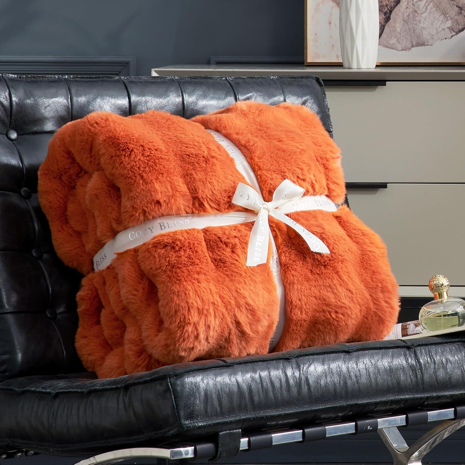Cozy Bliss Faux Fur Throw Blanket for Couch, Fuzzy Soft Plush Thick Bubble Blanket for Sofa Bedroom Living Room, 50 * 60 Inches Burnt Orange