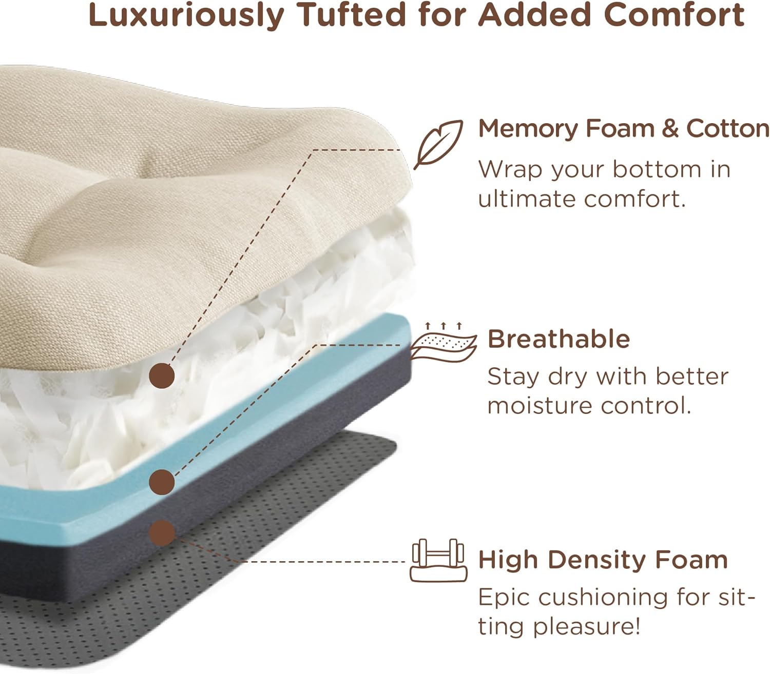 - 【Triple-Layer Construction】Top layer is a combination of cotton and shredded memory foam. Along with the breathable layer and high-density foam, it delivers the perfect balance of comfort and support to create a remarkable seating experience