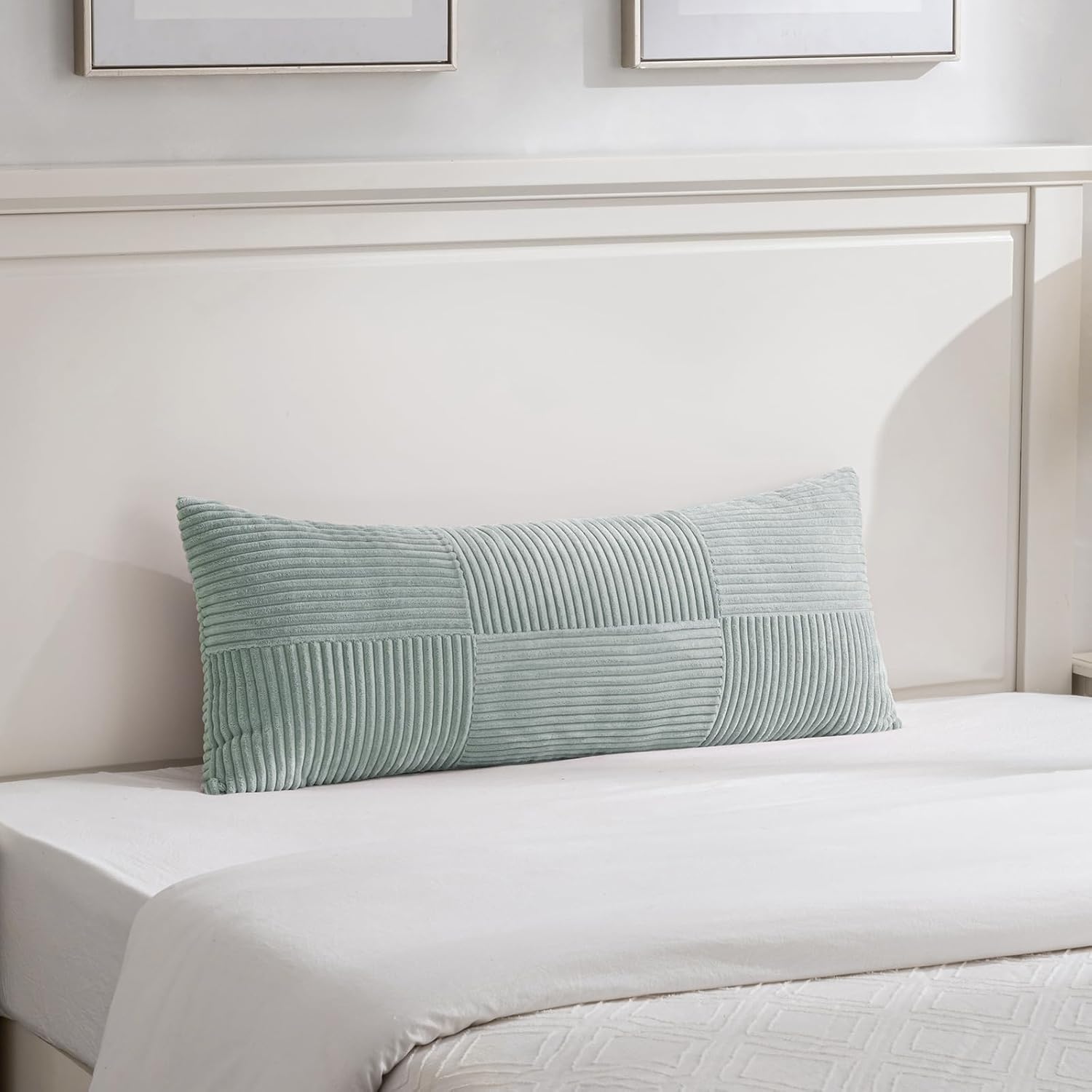 Fancy Homi Set of 2 Grey Blue Boho Long Lumbar Body Decorative Throw Pillow Cover 14x36 Inch for Bed Couch Bedroom Bench, Soft Patchwork Corduroy Textured Pillow Case, Rustic Farmhouse Room Décor