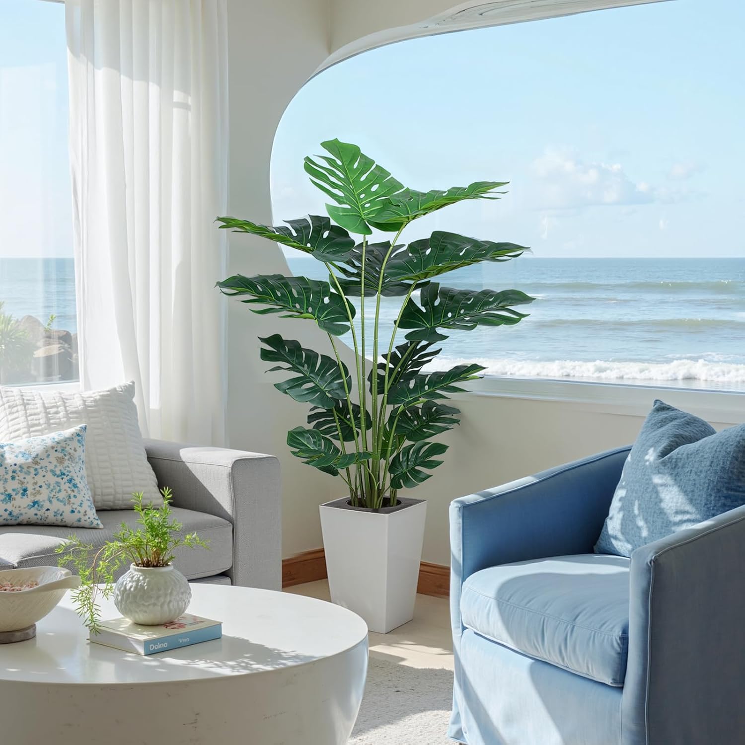 - ăLifelike Decoră: This faux monstera plant features a likelife leaves, mimicking natural monstera plant details for adding a touch of nature to your indoor space.