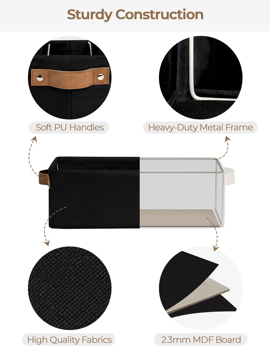 StorageWorks Narrow Storage Bins, Small Basket for Closet and Shelves, Fabric Organizer with Handles, Toilet Paper Storage, Black, 2-Pack