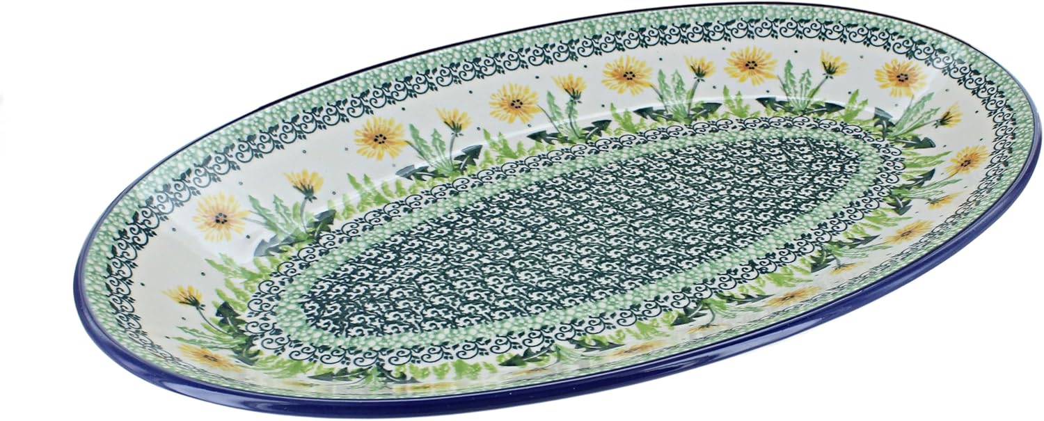Blue Rose Polish Pottery Dandelion Oval Platter