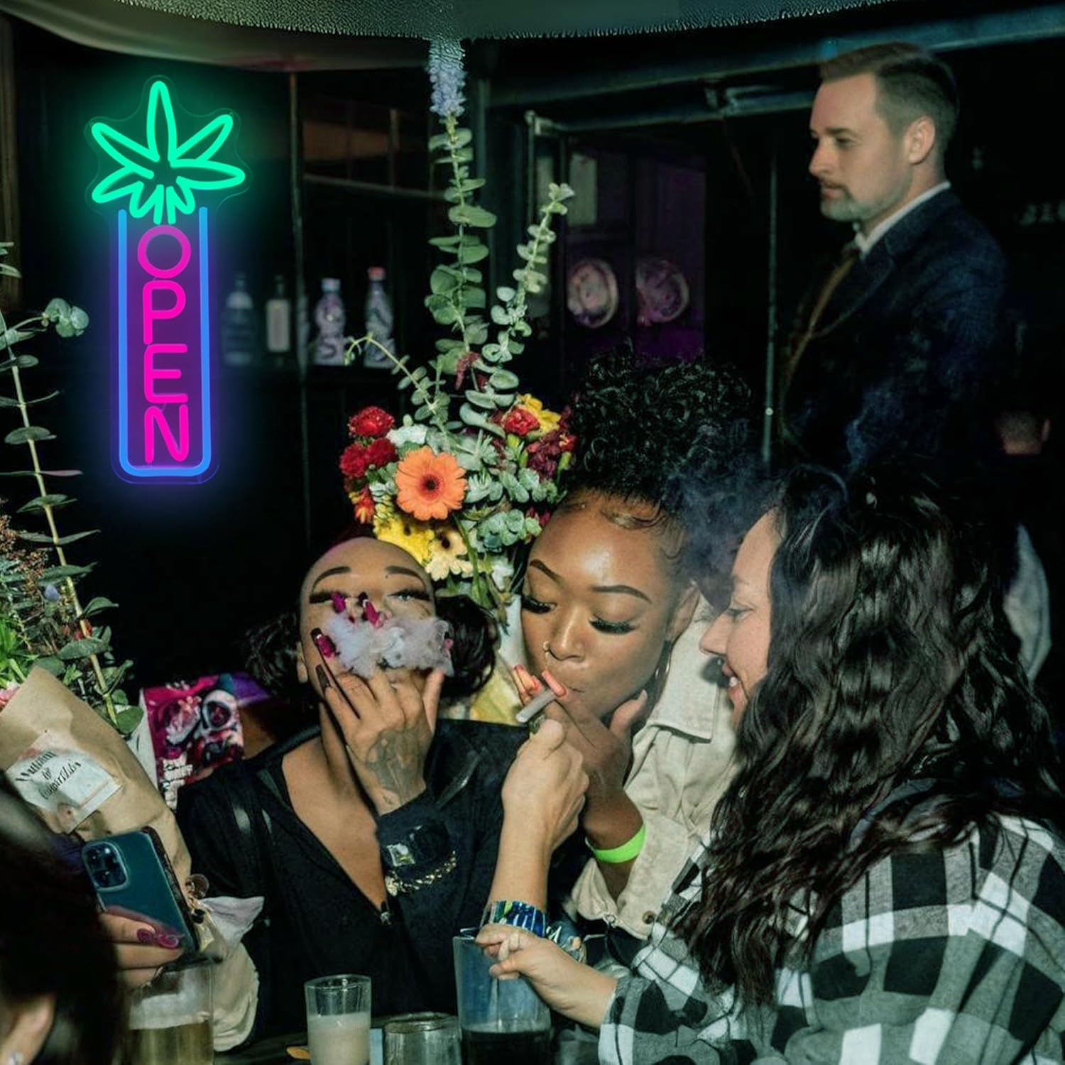 Green Leaf Neon Sign Dimmable Open Neon Lights for Wall Decor LED Neon Sign by USB Powered LED Neon Open Sign For Dispensary Beer Bar Man Cave Coffee Store Hotel Wall Party Decorations 16.8''x7''