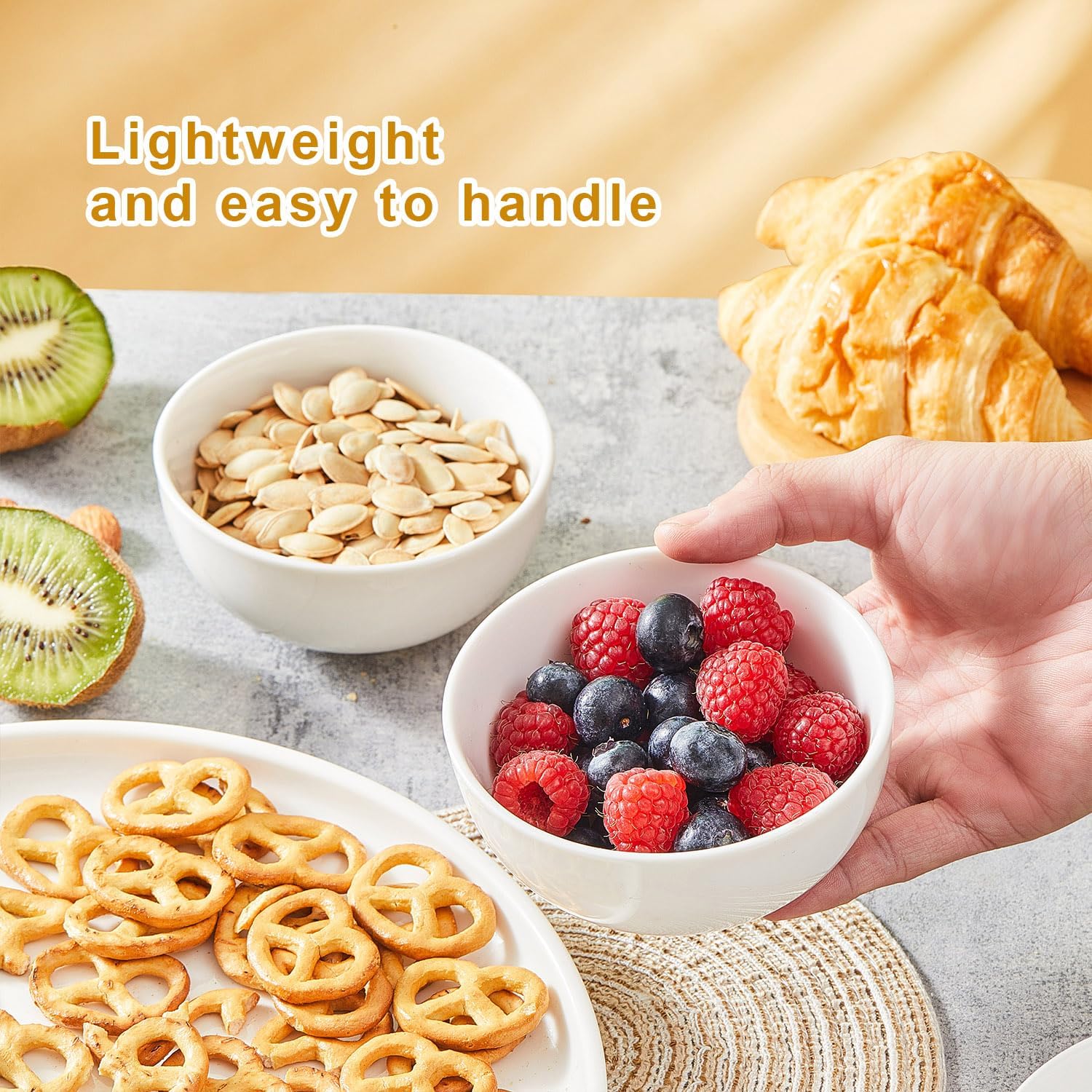 - 🌟Perfect Size for Small Servings: AntoKueh 4.5 inches white Porcelain Bowls have a MAX capacity of 12 fl oz. 12 oz is to the very top. Each small bowl can hold 9-10 fl oz, which is perfect size for kitchen daily use - salsa,cereal,Ice cream, fruit, side dishes, jello, pudding, yogurt, etc. (Small bowls, not M or Large size)❗️❗️If you don't know how big 4.5 inches is, find a ruler at home and measure it first❗️❗️