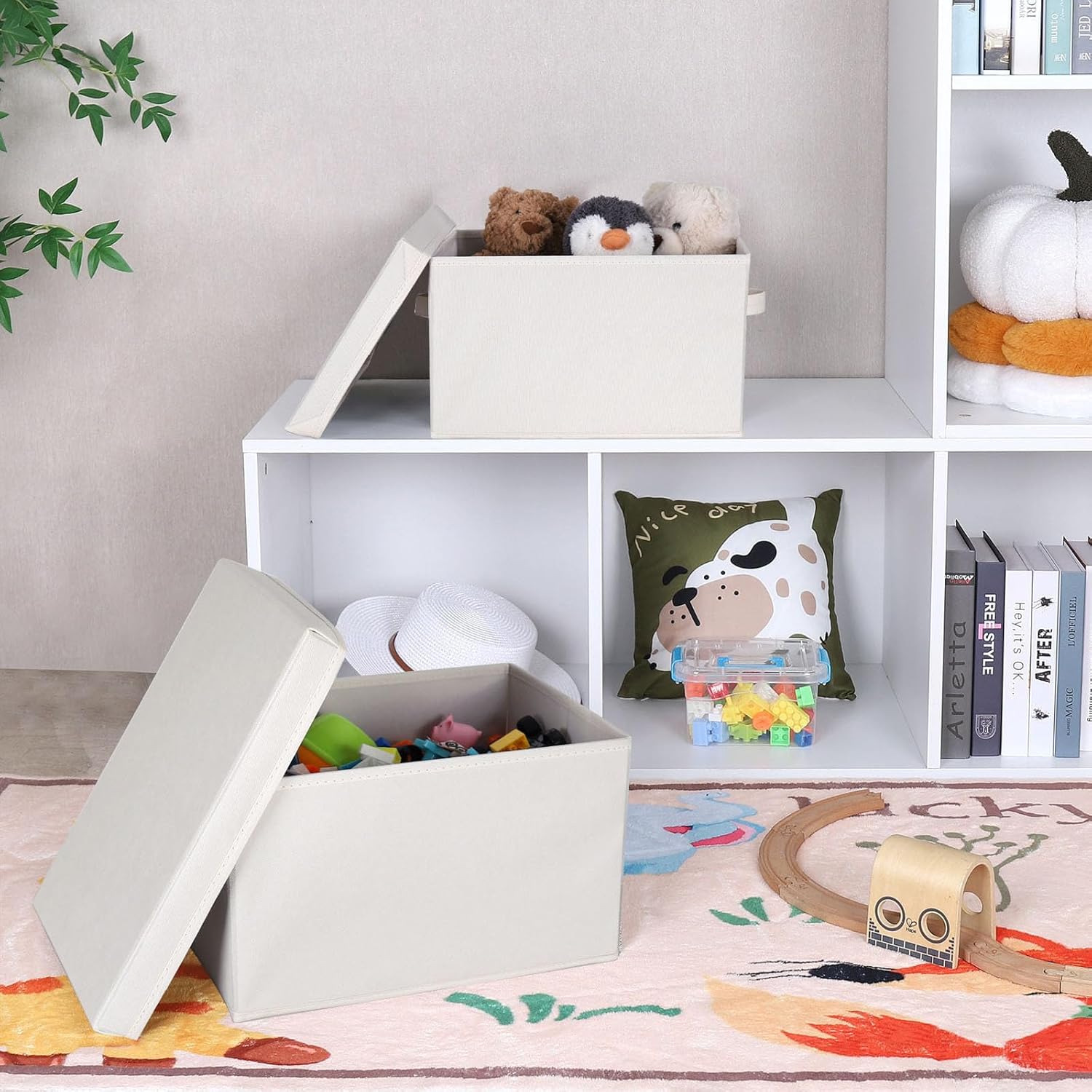 - Practical Design: The fabric storage bin features a lid to minimize dust entry, two sturdy side handles for easy portability, and a collapsible construction that saves space.
