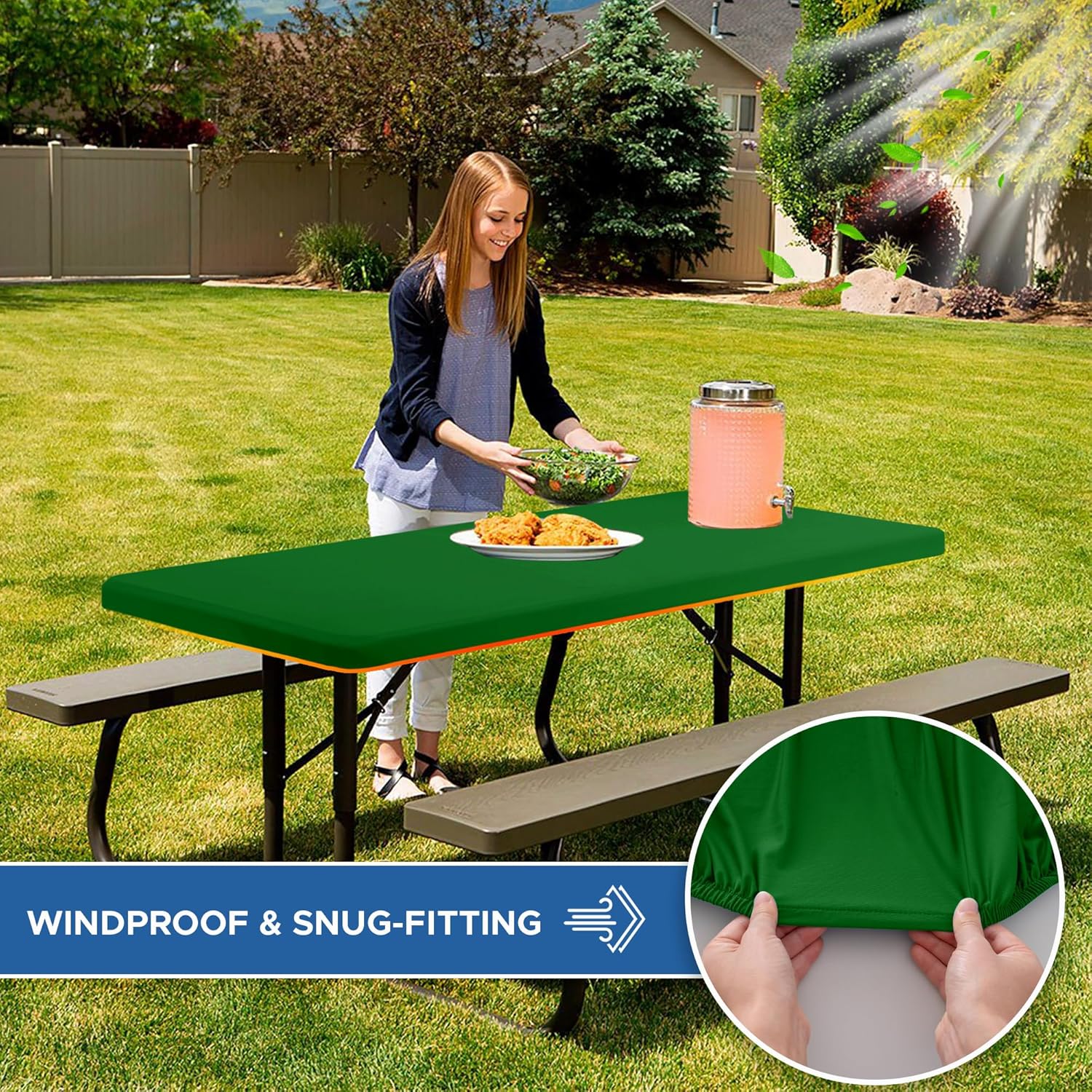 Fitted Tablecloth for 8 Foot Rectangle Tables-6 Pack Green Elastic Outdoor Picnic Table Cover-Spandex Stretch Folding Table Cloths 8ft for Camping Dining Room Patio Kitchen Banquet Party