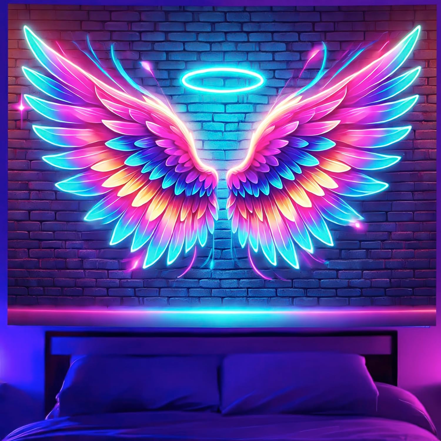 - Unique Gift Choice: Surprise friends or loved ones with this UV reactive angel wings tapestry, perfect for artistic souls, party enthusiasts, or anyone who enjoys unique and vibrant home dĂŠcor. A memorable gift for any occasion. it will serve as a captivating and stylish addition to your dĂŠcor.