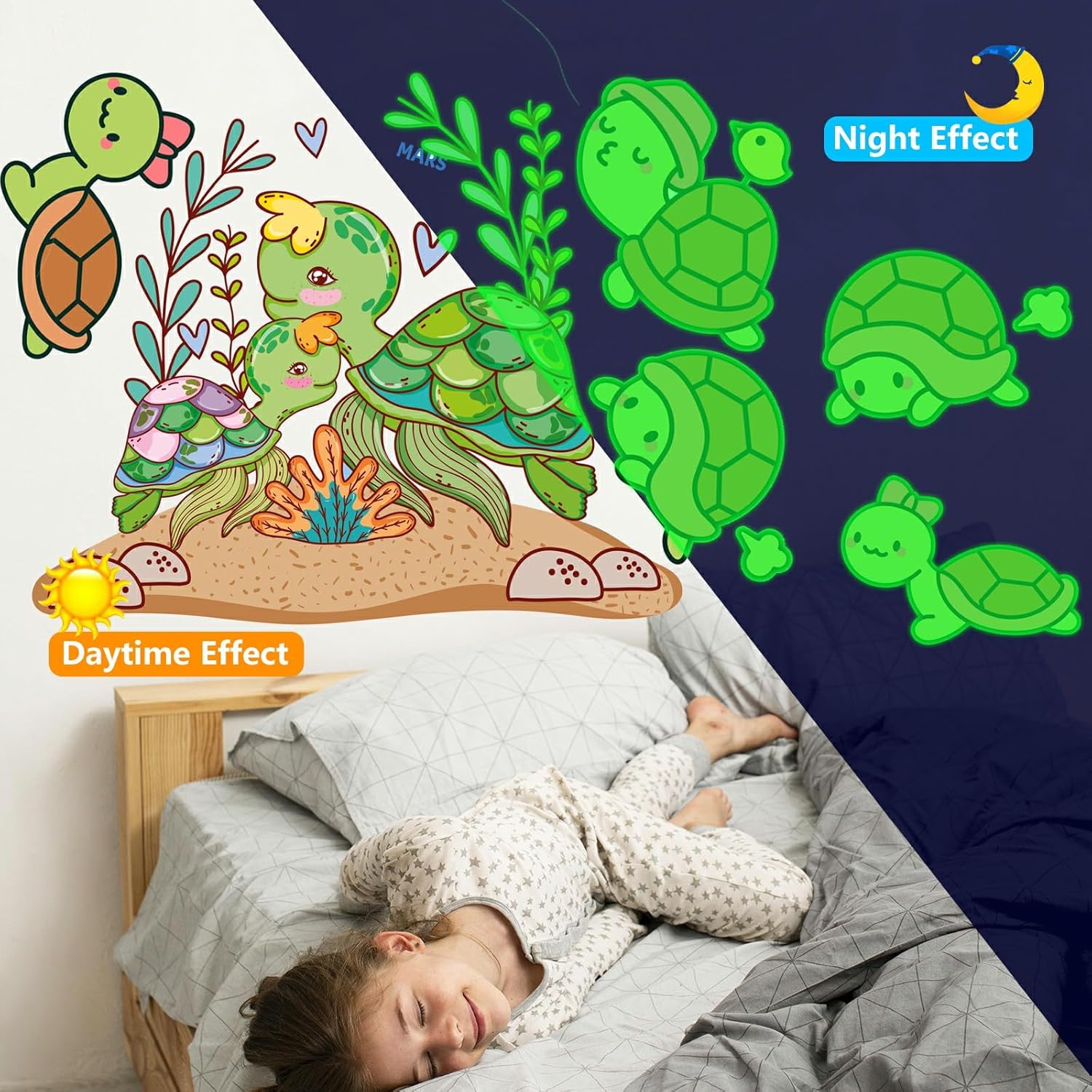 - ⦠DIY Wall Decals: You will get 4 sheets (Size of each sheet: 11.8 x 8.26 inch) of glowing Cute Turtles wall decals in a set, can be combined arbitrarily.The cute sea turtle wall stickers can be easily matched with a variety of home decoration styles, children can DIY a fairy-tale ocean world according to their own preferences.